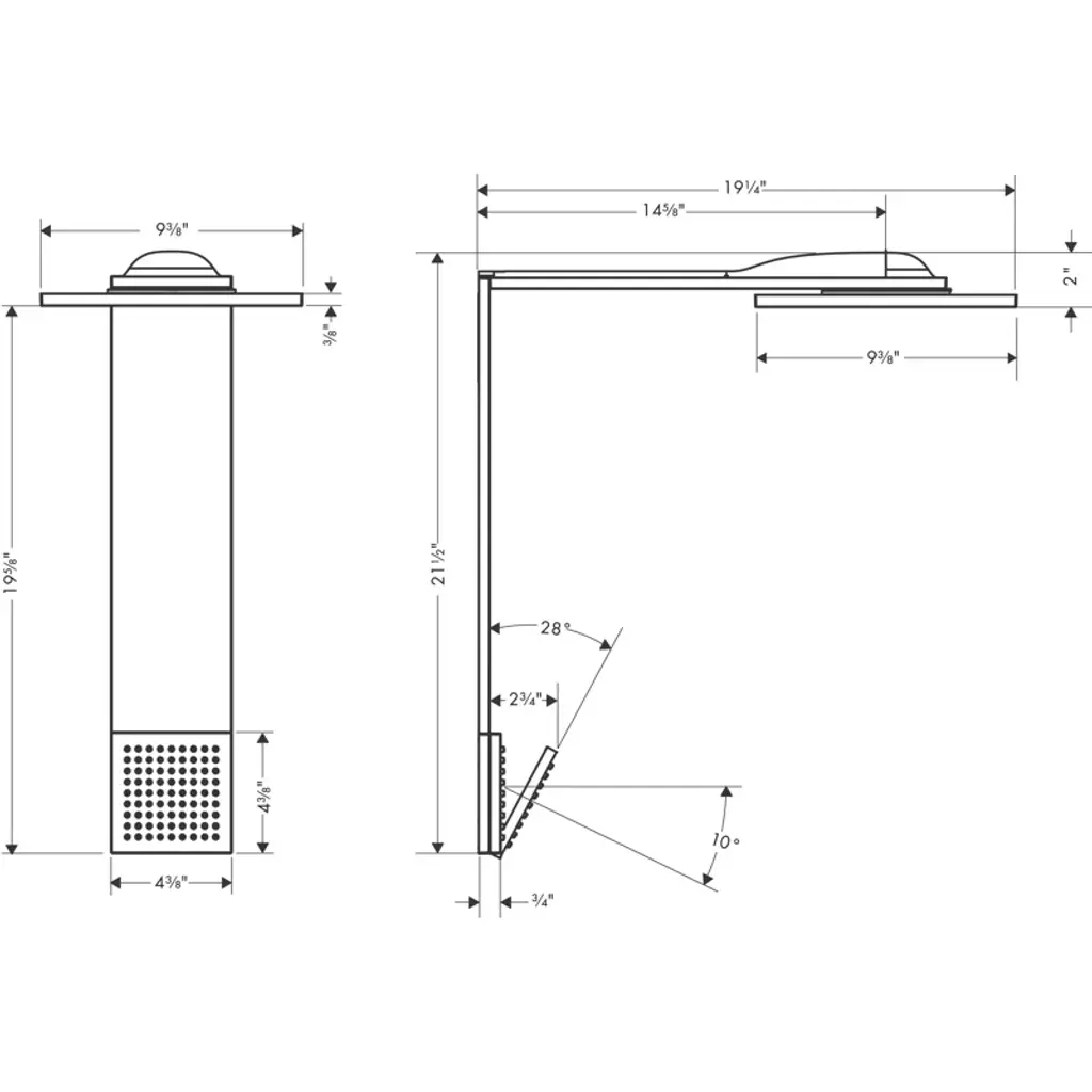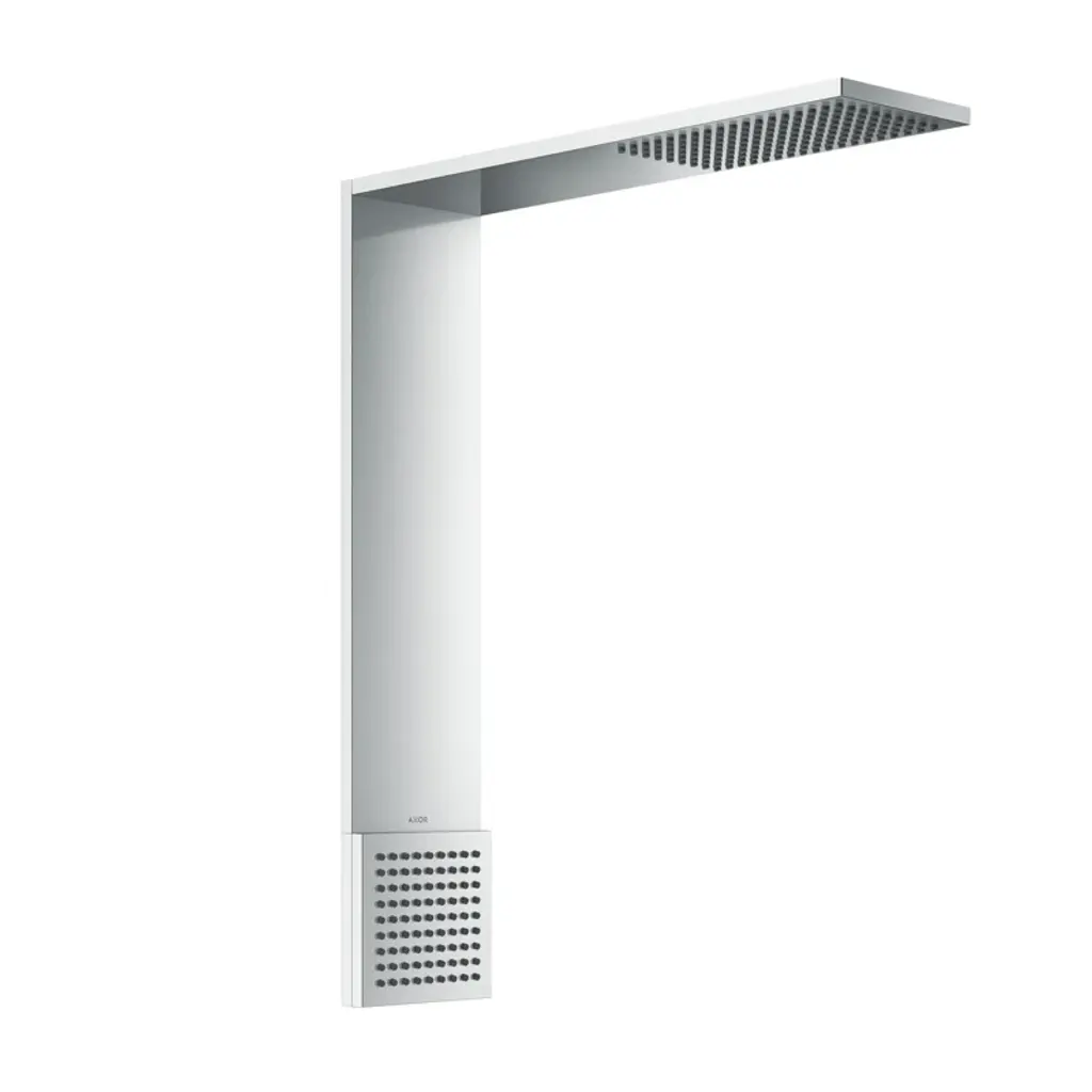 A shower is a very intimate space, and it must be flexible and adaptable to an individual’s needs. Designed by world-renowned creator Philippe Starck, AXOR ShowerComposition introduces a striking new universal design language, modern and timeless, to the shower. It features sleek, flat surfaces and ultra-slim profiles in an architectonic composition that presents new possibilities for individual expression. Whether as an all-in-one shower panel or a personalized arrangement of floating modules, AXOR ShowerComposition offers exceptional performance, including immersive PowderRain spray mode overhead and PowderRain shoulder showers with angle adjustment. AXOR ShowerComposition features a reduced, rectangular design, the diminutive depth of the showerhead, and vertical panels, counterbalanced by their generous width. While the shower panel offers full functionality in one single basic set, individual shower modules can be composed and arranged for a truly personalized shower experience.