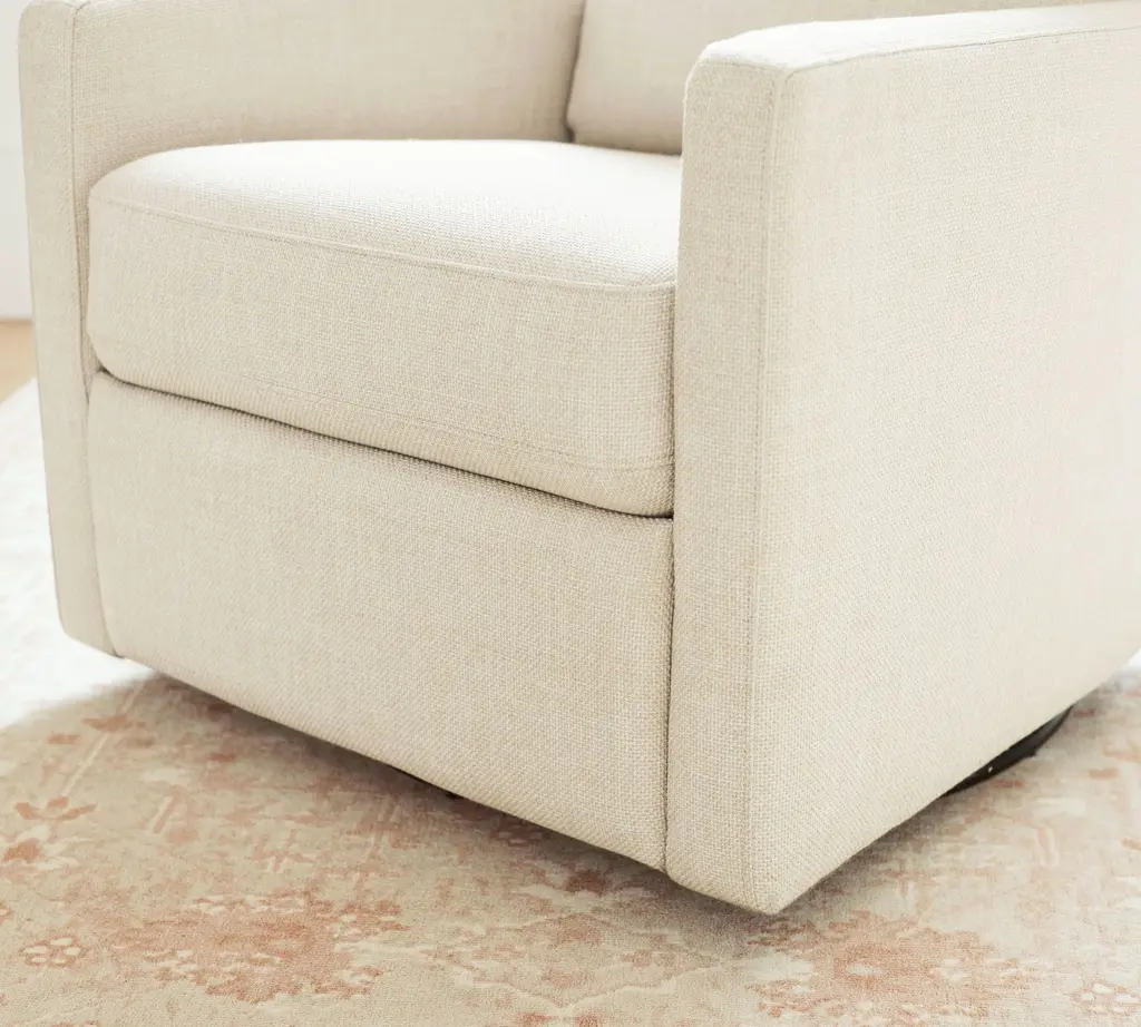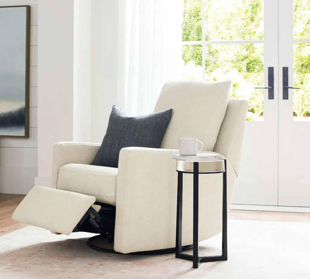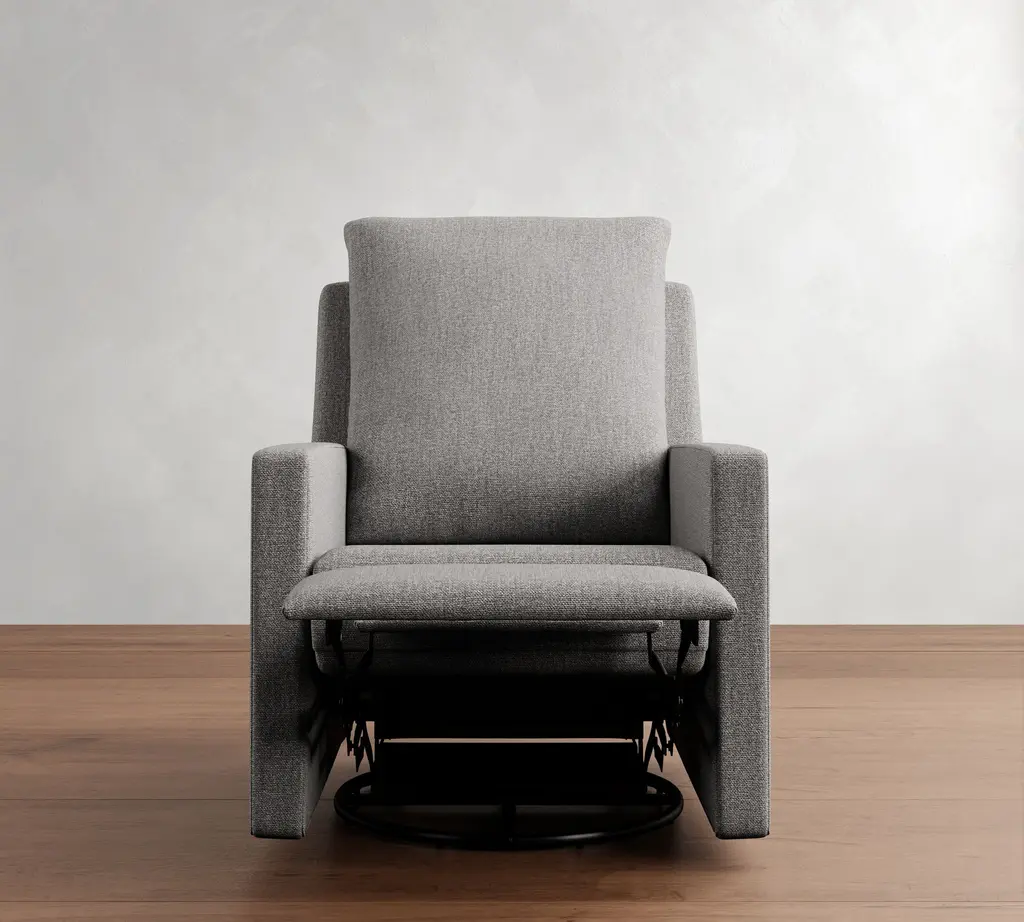 Minimalist style with a slim silhouette that's pure comfort. Ayden combines a modern look with a design that does it all – it swivels, and glides, and has three preset positions that recline with the touch of a button.