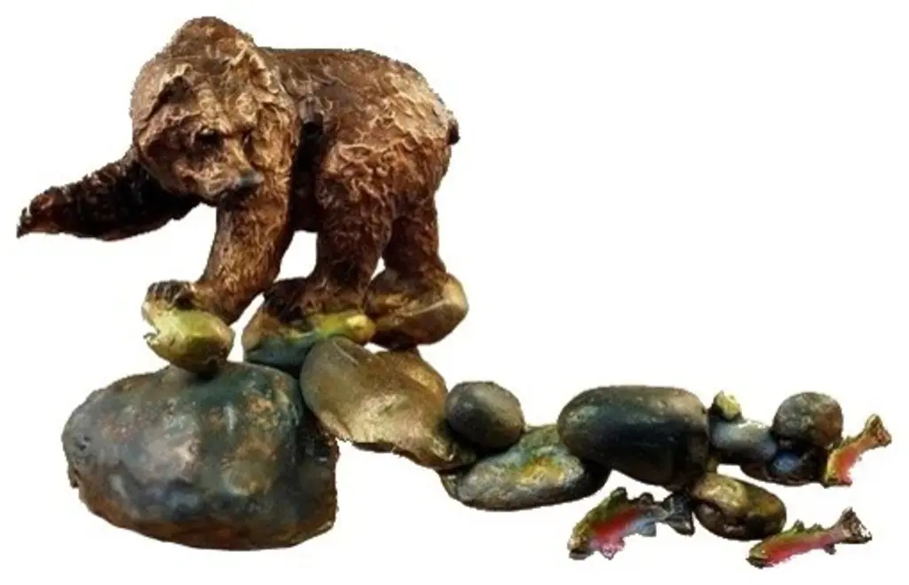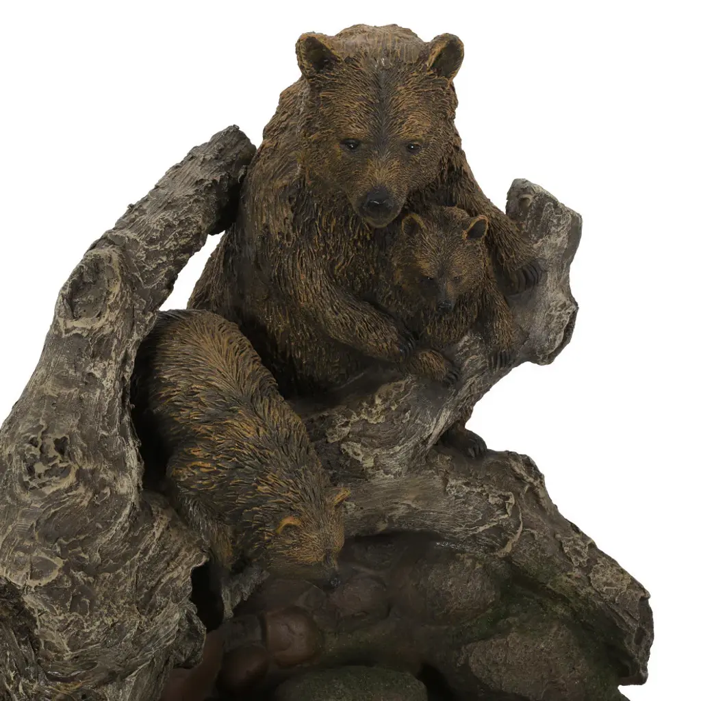 Aza Callan Outdoor Bear Family Fountain, Light Brown And Moss