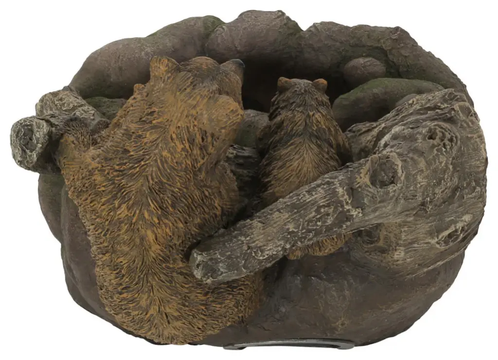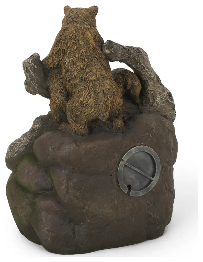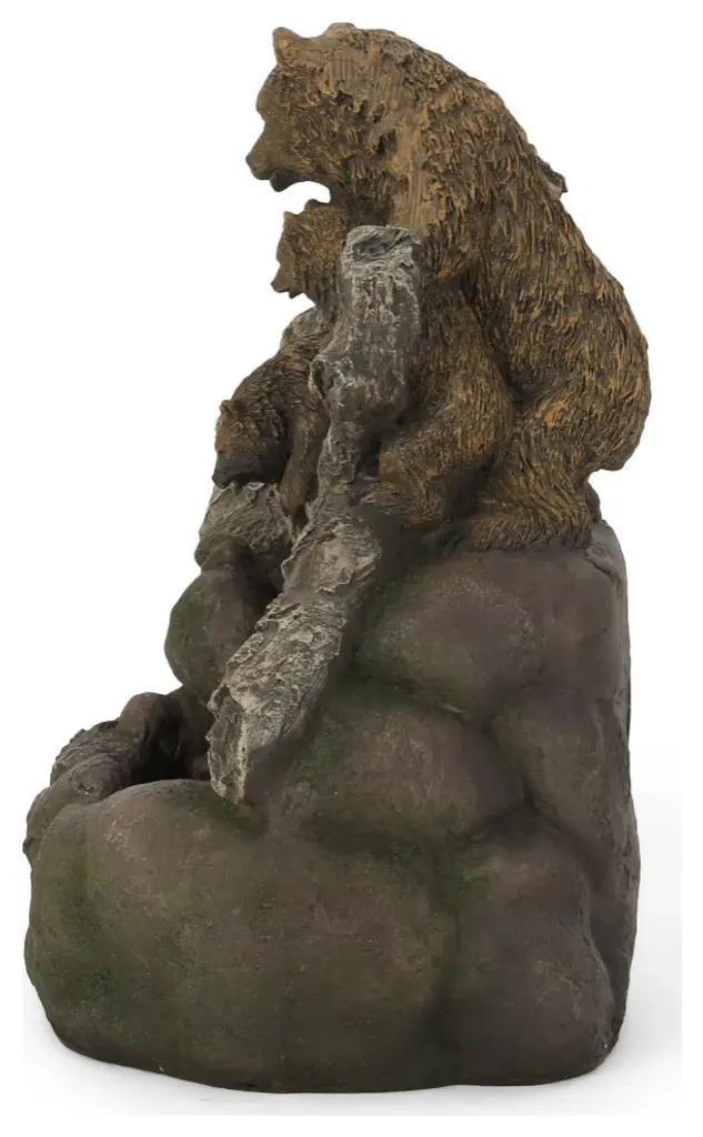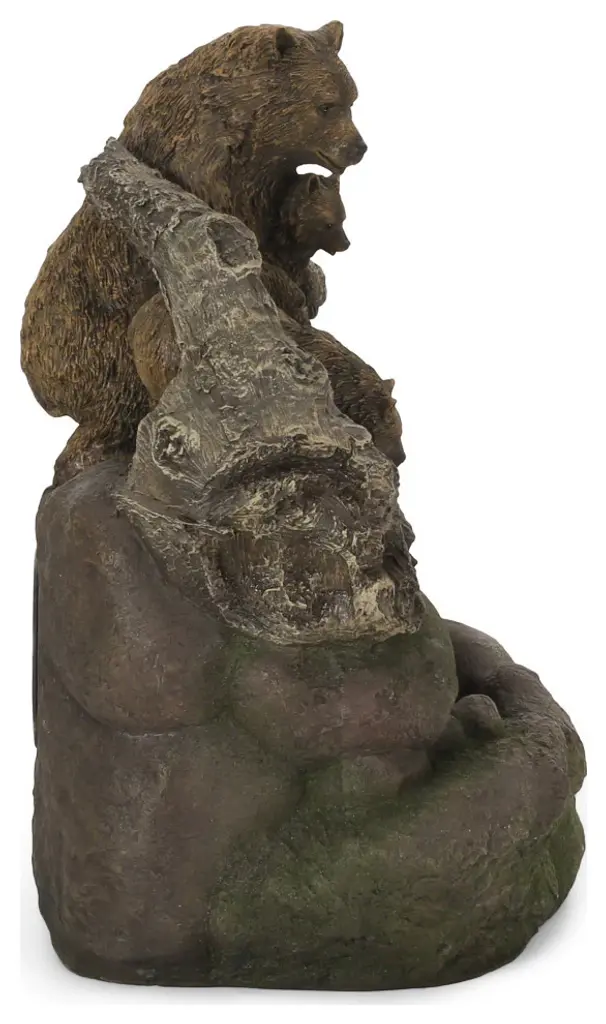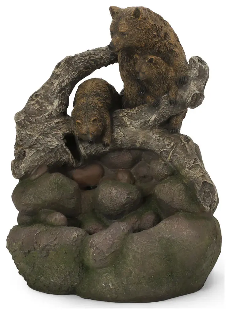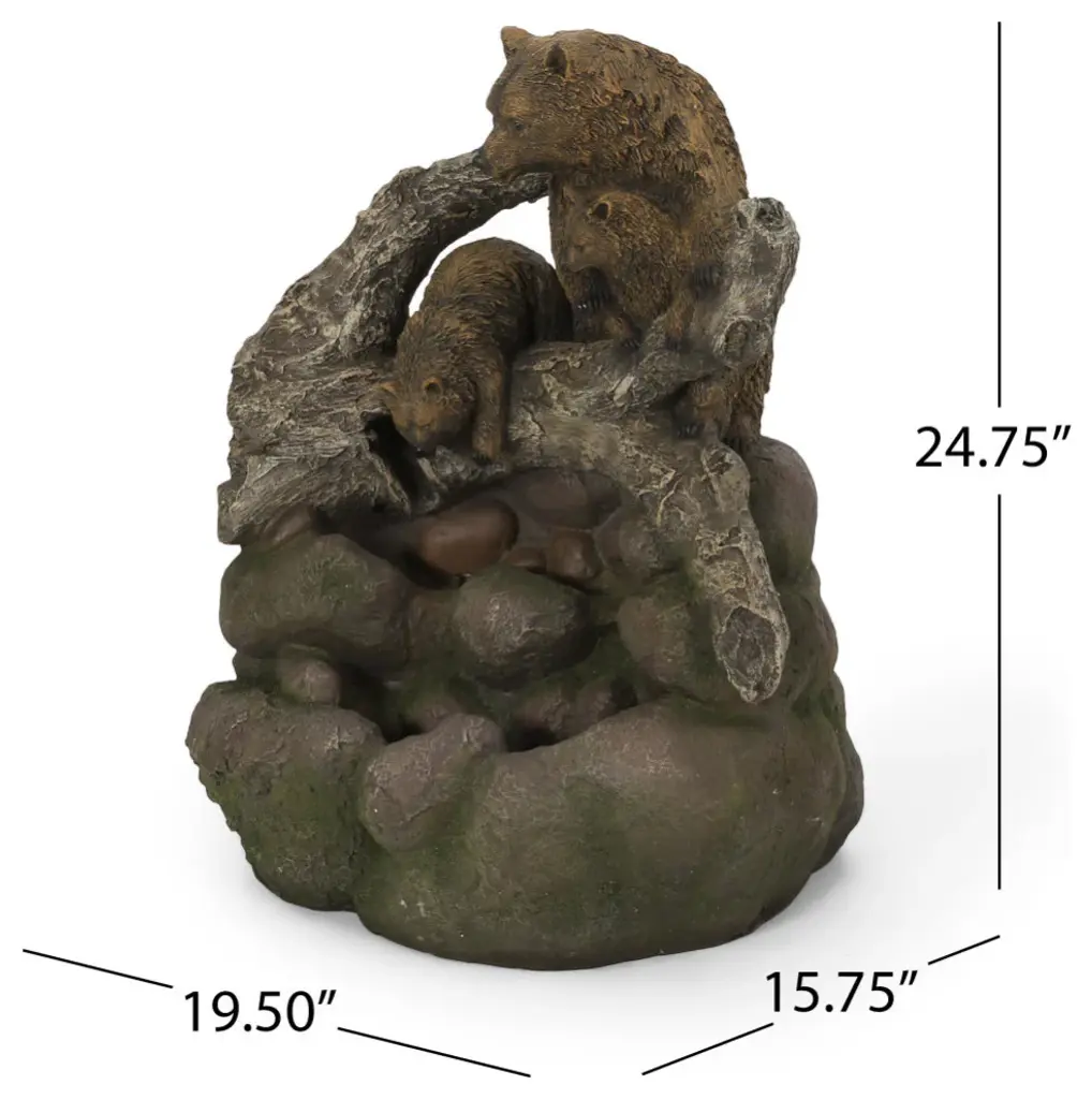 Transform your outdoor space with a crowning statement that is sure to bring a peaceful ambiance. Our garden fountain features a calm waterfall flow that continuously circulates using an included pump, bringing a playful aura to any backyard or patio. Crafted with an incredibly durable polyresin material, this decorative accessory offers a weather-resistant structure that allows outstanding attention to detail. Finished with a family of bears and enchanting underwater lights, our water fountain is sure to add a touch of whimsy to your home.A TOUCH OF PERSONALITY: Easily customize your backyard, garden, or patio with this charming outdoor water fountain. With a playful design and stunning attention to detail, this accessory will be sure to enhance any outdoor space.WATERFALL FLOW: With a gentle and relaxing water flow, this garden fountain uses an interior pump to bring a peaceful atmosphere to your outdoor space. This fountain features a family of bears and two tiers that create a beautiful waterfall effect.FAUX STONE: Crafted with a stone-like material, this fountain provides a weather-resistant foundation that has clean-cut edges. This can be easily poured into flexible molds that brings outstanding details to each piece.LED LIGHTS: The base of this fountain is illuminated with underwater LED lights for a dynamic effect on your outdoor decor. These lights offer an eco-friendly, energy-efficient option that saves you electricity and money. These lights have an incredibly long life span and do not burn out like regular bulbs. They will simply begin to dim once it begins to lose its energy.DIMENSIONS: Choose an accessory that is the perfect size for you and your furniture. This fountain is 19.75" W x 19.75" D x 26.50" H. You will love how much your space can transform with the simple addition of this charming fountain.