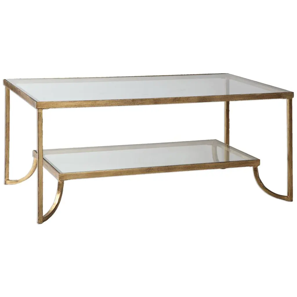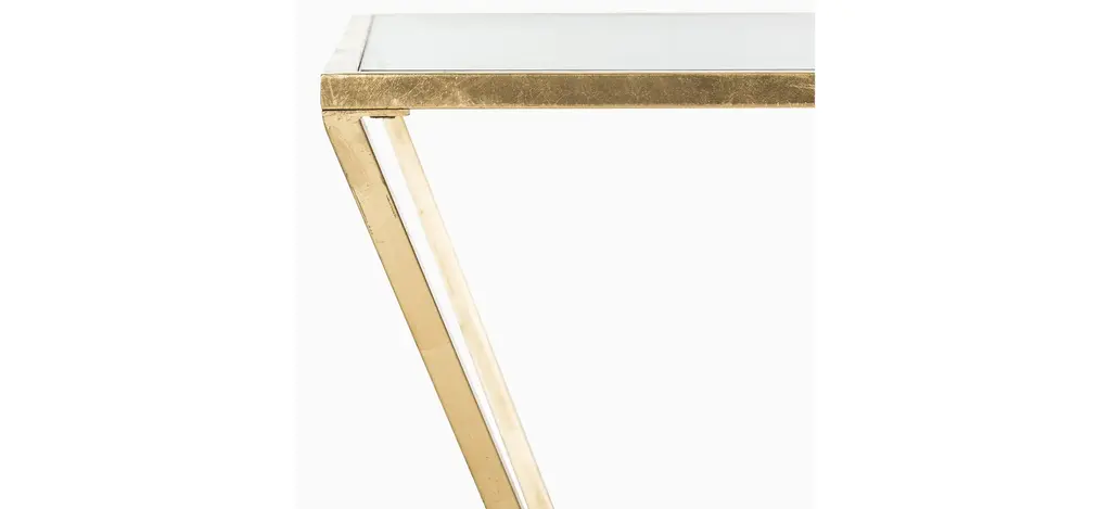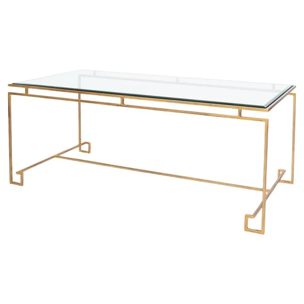 Designed to complement fine antiques or an acquisition from a favorite gallery, this contemporary Aziz coffee table is a tasteful addition to any interior. An instant classic, its bold geometric form adorned in gold leaf creates an aura of sophisticated warmth.