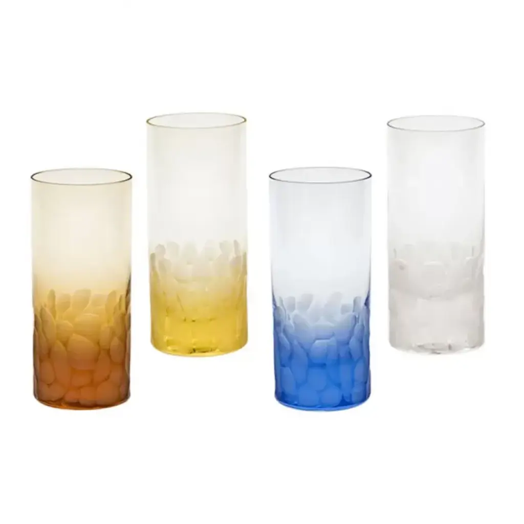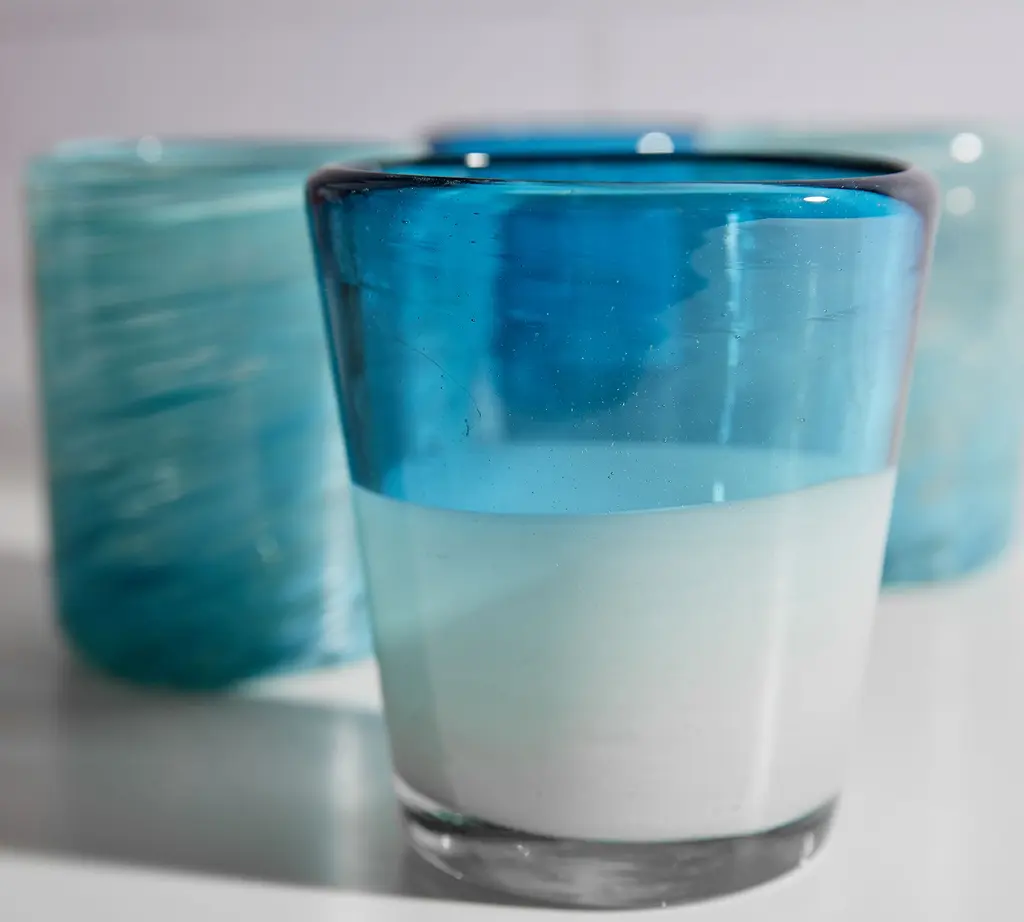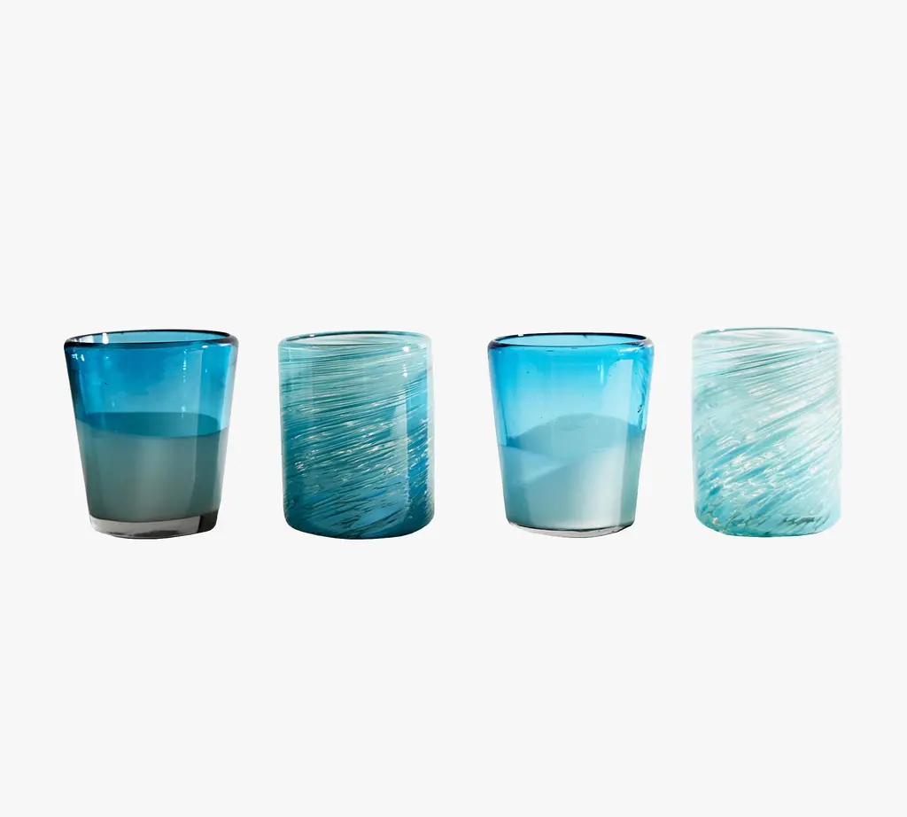 Add a pop of color and visual texture to your summer table. Crafted of recycled glass by artisans in Jalisco, Mexico, each piece is sustainably handcrafted, which means no two pieces are alike. This set of four comes with a pair of gradient and swirl designs that aren’t just pretty to look at – they’re pretty good for the environment too.