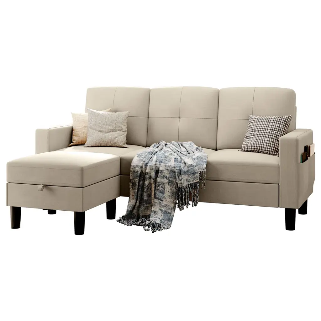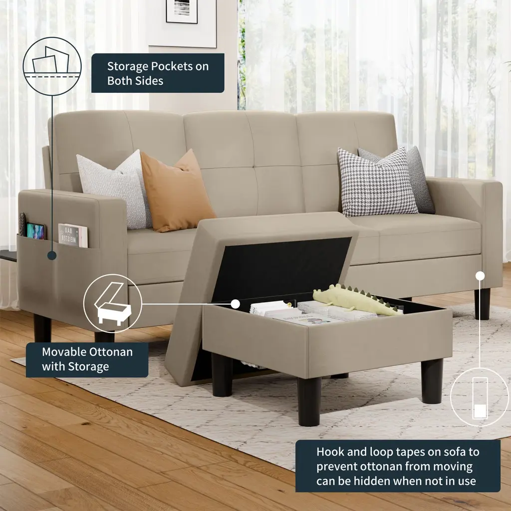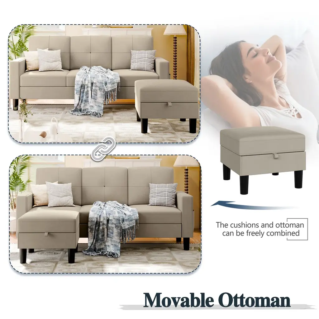About This Product This modular sofa-and-chaise sectional grounds your living room in a contemporary look. The included ottoman moves to either side of the sofa, so it customizes however you like. It's made with a solid wood frame upholstered in a cotton blend. The fabric is UV, fade- and tear-resistant, so it's ready for whatever you throw at it. The cushions are filled with foam and polyester and supported by coil springs for a balance of padding and stability. Plus, the seat cushions and their covers are removable for easy cleaning. Not Included: Toss Pillow(s) Features Made of solid wood with an L-shaped design, this small space sofa with ottoman is ideal for any corner or living room. The ottoman can be placed on the left or right side as desired. Easy to install, it only takes 10 minutes to complete the installation, very convenient.