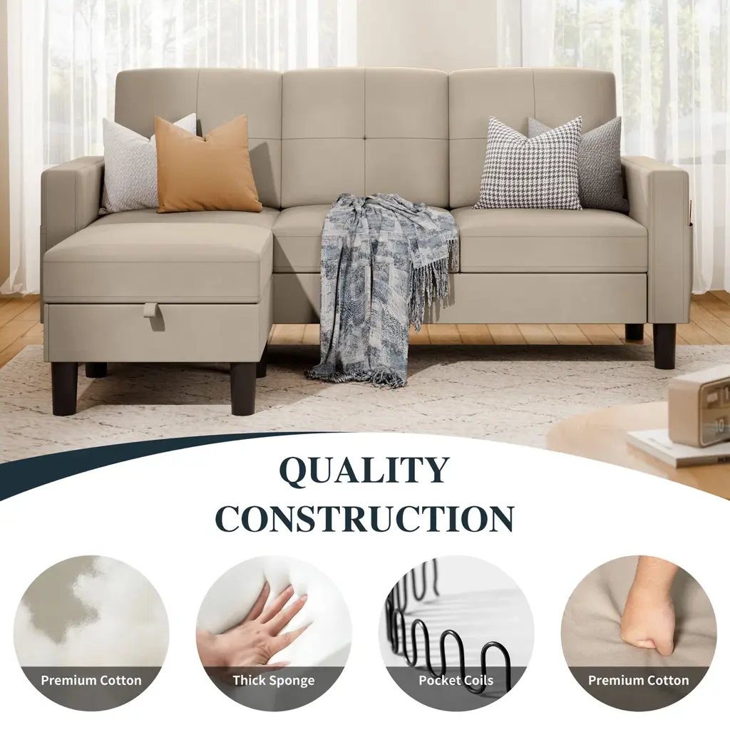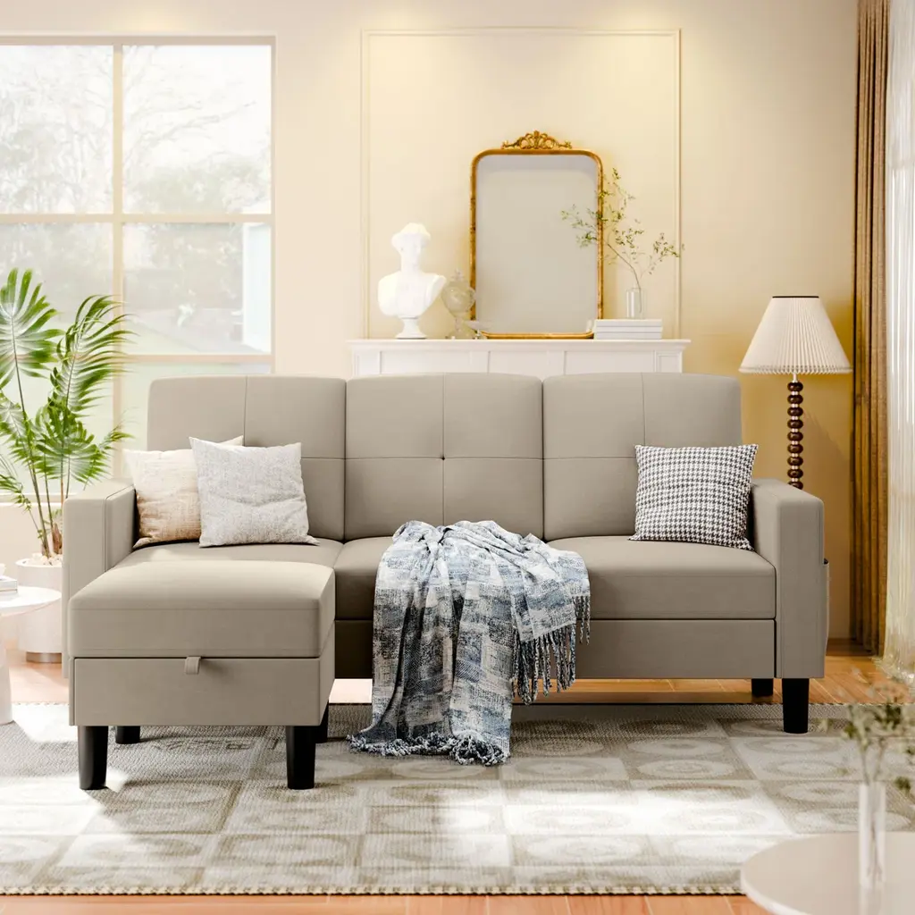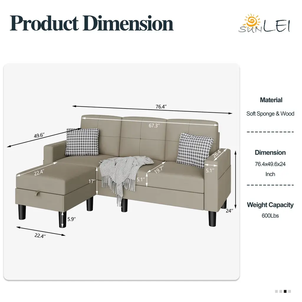 About This Product This modular sofa-and-chaise sectional grounds your living room in a contemporary look. The included ottoman moves to either side of the sofa, so it customizes however you like. It's made with a solid wood frame upholstered in a cotton blend. The fabric is UV, fade- and tear-resistant, so it's ready for whatever you throw at it. The cushions are filled with foam and polyester and supported by coil springs for a balance of padding and stability. Plus, the seat cushions and their covers are removable for easy cleaning. Not Included: Toss Pillow(s) Features Made of solid wood with an L-shaped design, this small space sofa with ottoman is ideal for any corner or living room. The ottoman can be placed on the left or right side as desired. Easy to install, it only takes 10 minutes to complete the installation, very convenient.
