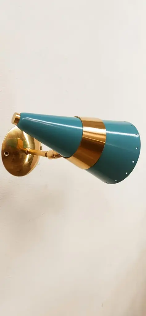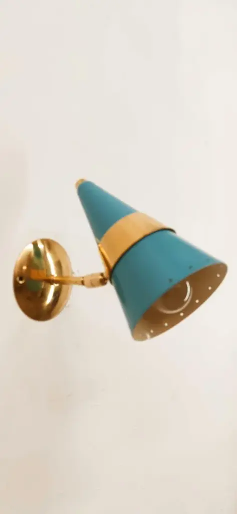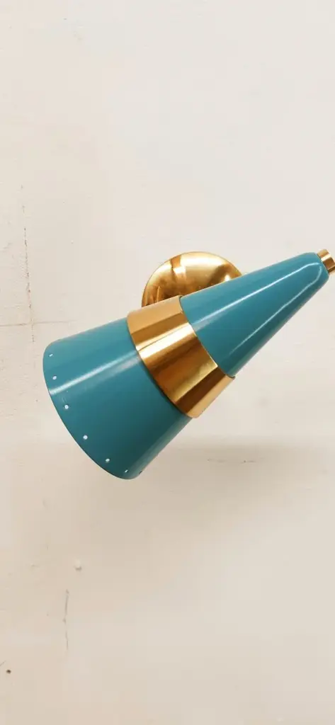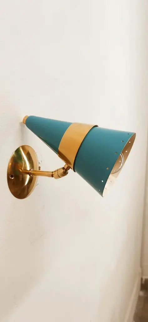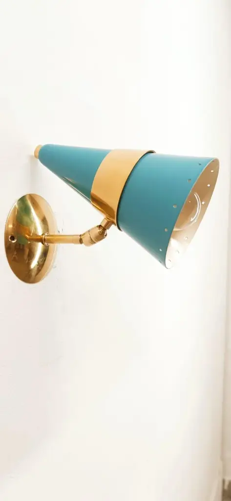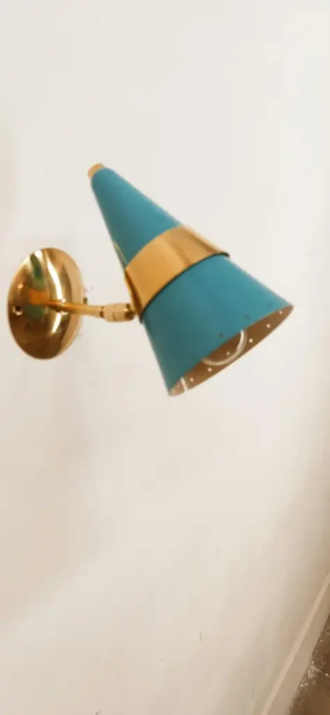 Azure & Gold Adjustable Sconce, in Flawless conditions. Designed 1970 to 1979 Up to 250V (Europe/UK Standard).The wiring of this item may be original and might need replacement, if not specified otherwise.