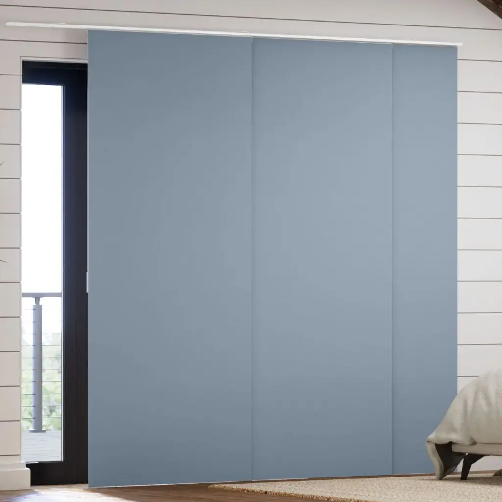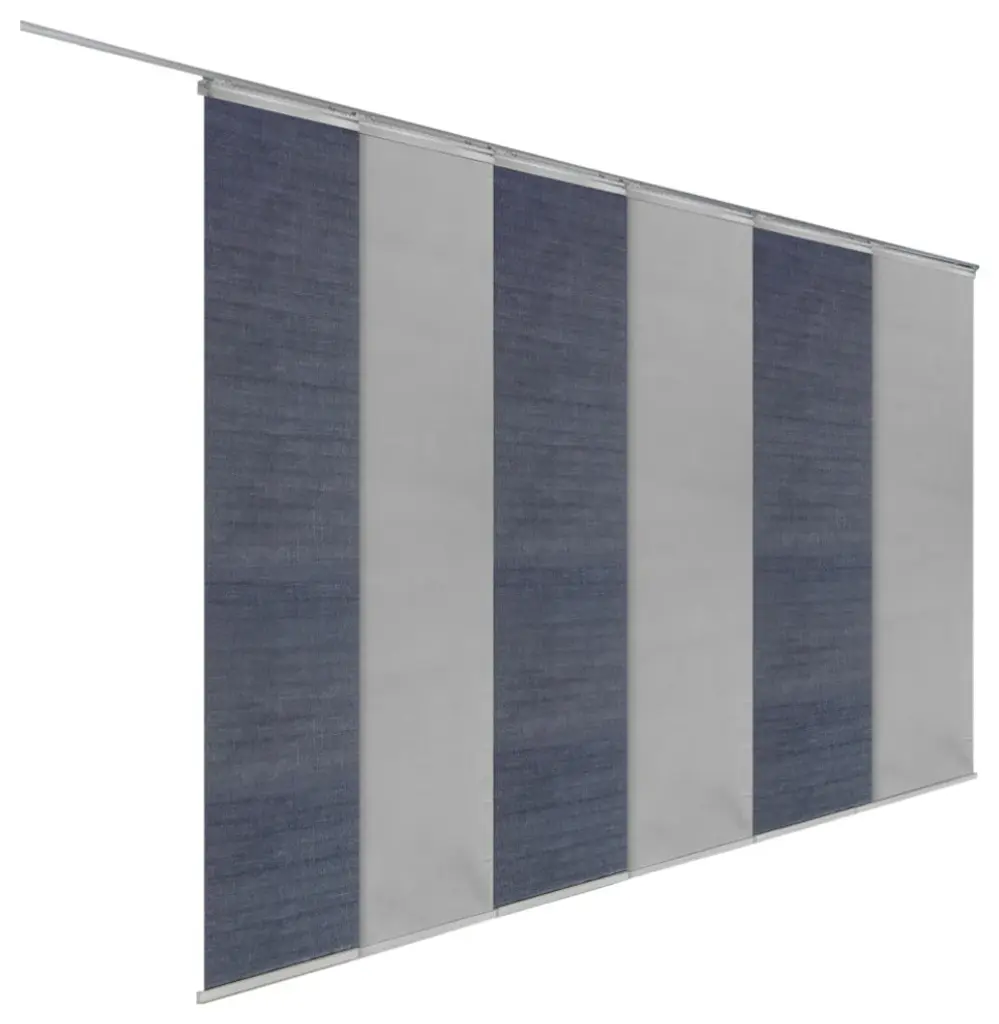 Central Design is pleased to announce the newly designed Panel Track, easily used as 2-way Vertical Blinds or Room Divider. Distinguished winner of the "2020 Good Design Award and 2021 MUSE Design Awards". Total Width is adjustable from 98-130". Individual Panel Size: 91.5" Height x 23.5" Wide. Overall Height including rail track is 94". The height of the Panel is adjustable by simply trimming the Panel and re-attaching the Liner and Panel Weight (Instructions provided). Wall or Ceiling mountable for versatility in its set up. Clearance (wall to the the back of Panel Track): extendable from 1.25"-3.25". Projection (wall to the furthest point): extendable from 3"-4.25". Single Rail Patented design; 1.25" thick for a very slick, thin, and compact design. No more bulky rail set ups. Made of steel for a durable and smooth operation of the Panels. Different from your standard panel track in that the sliders are designed in a more compact, overlapping fashion to reduce light bleed coming from in between the Panels. Track Material: steel. Panel Material: Polyester.More Panel Track sizes available & sold separately; 3-panel, 4-panel, 5-panel, 6-panel