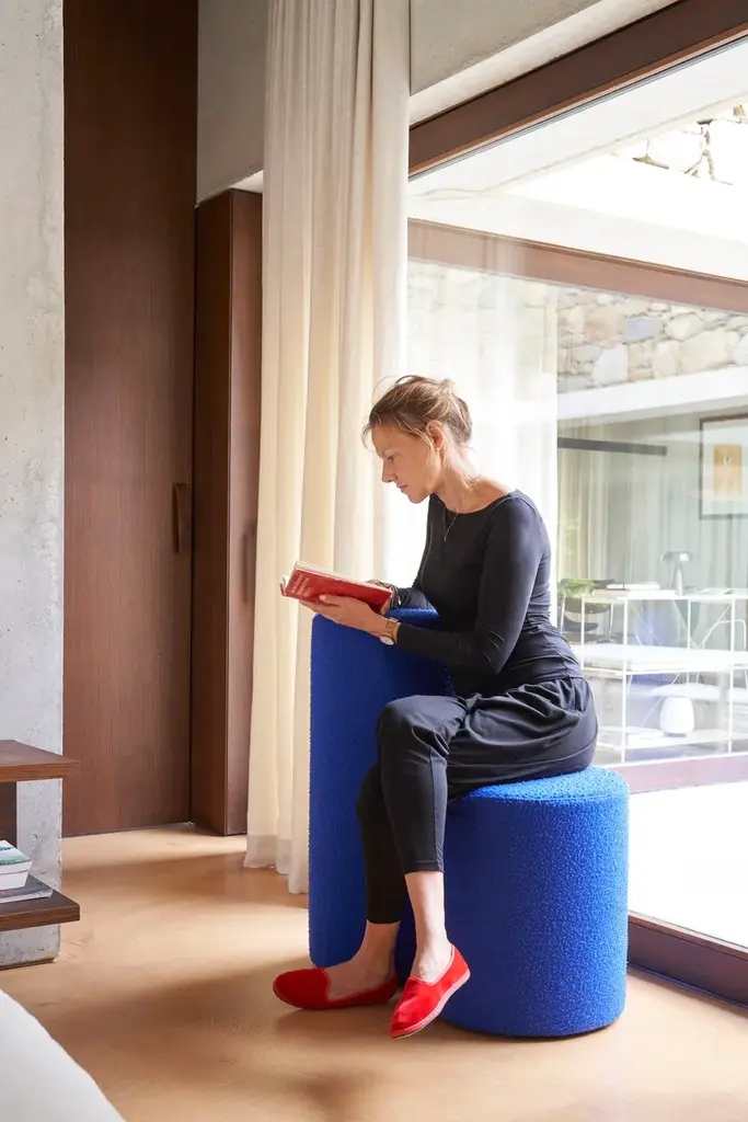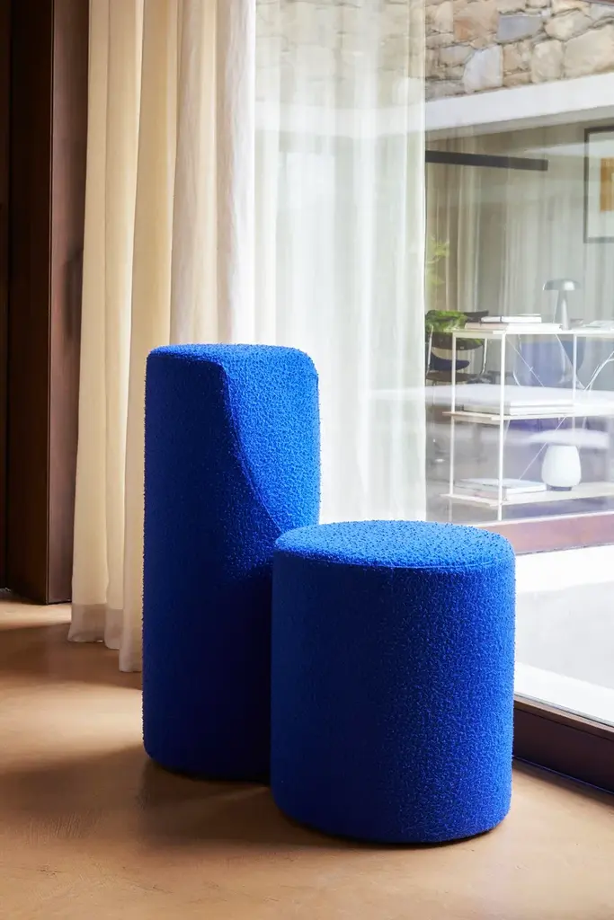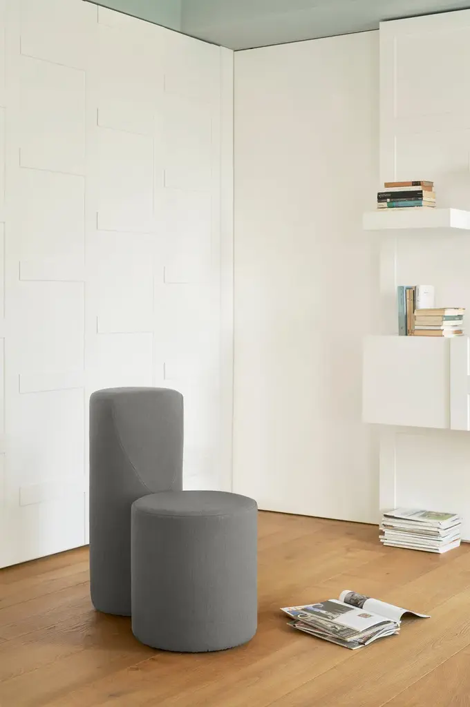 For leisure, study and work. An unusual, destructured armchair composed of two or three cylinders of different heights, connected by a steel base.B.tri and B.duo – designed by Bruno Rainaldi – are unconventional seats to accommodate one single person, but also an invitation to conviviality: the cylinders become a welcoming place any time you need to have someone close, to share something with. Original and versatile, coated either in fabric or leather, B.tri and B.duo add a touch of novelty to any environment: at home, in a state-of-the-art office space, a hotel room, or the most cutting-edge training centre.