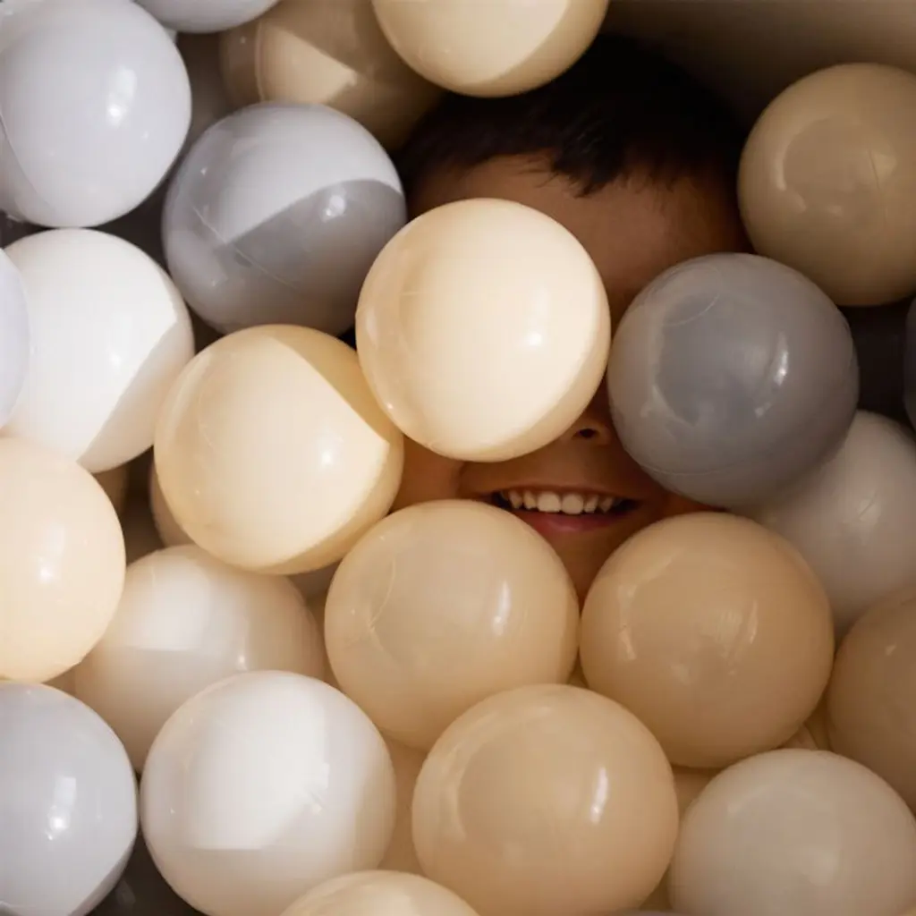 Jump for joy! This ball pit brings hour after hour of active fun right into the playroom. A gift that's sure to wow little ones, it's perfect for getting out all that energy at home. The set comes with plastic balls in white, pale pink and grey, plus a natural-toned ball pit. The pit is made from cotton jersey for a sturdy yet portable design, allowing you to easily move the good times from room to room.