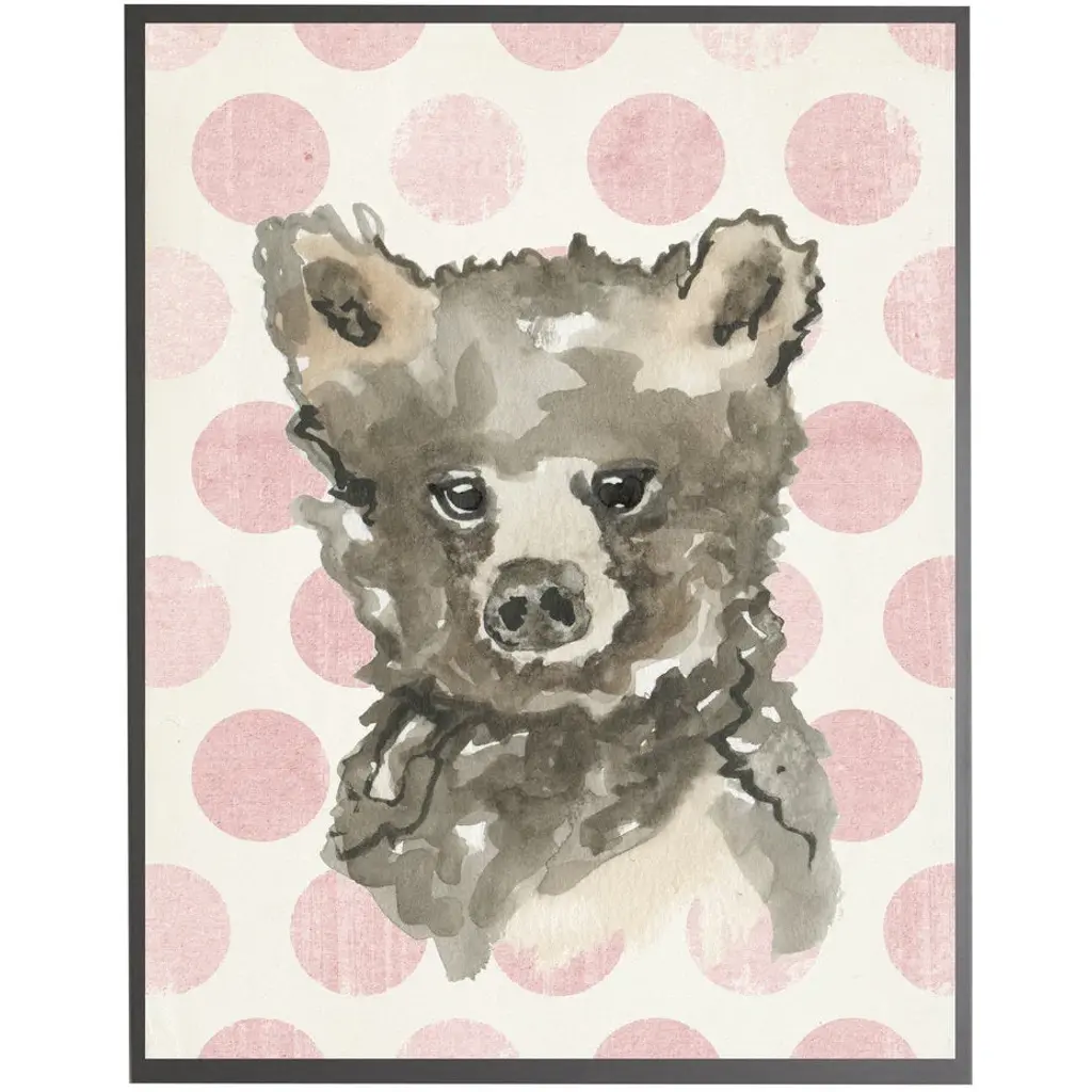 Baby Bear Watercolor Print Blue Dots Grey Frame Children's Art (Size Options)