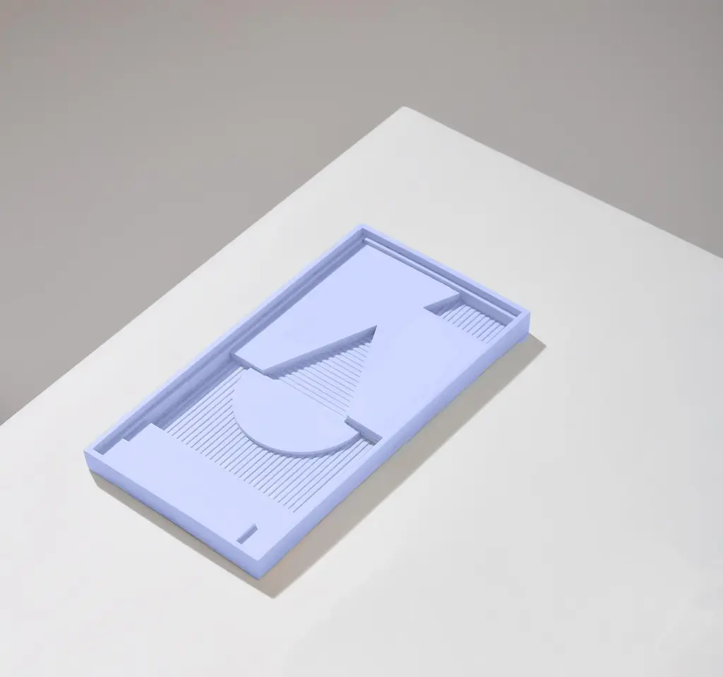 Baby blue rectangle under the surface by Theodora AlfredsdottirUniqueMaterials: Jesmonite, glass topDimensions: 140 x 260 x 30mmTheodora Alfredsdottir is a product design studio based in London. Theodora is an Icelandic product designer. She holds a bachelor’s degree in product design from the Iceland Academy of the Arts (2012) and a master’s degree in Design Products from the Royal College of Art in London (2015).Storytelling through objects; Theodora’s work revolves around the narrative an object can inhabit and exploring ways of objectifying that narrative. She's interested in the way an object can act as documentation of its manufacturing process; a record of what went on between the machine, tools, craftsman and material as well as it can communicate its origin and former life. In short, the object creates its own factual narrative. That often leads to the discovery of unexpected qualities as well as it gives the user a subtle opportunity to reconsider our material world and explore value in a different way.