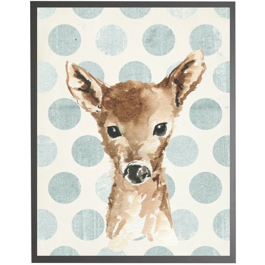 Baby Giraffe Watercolor Print Blue Dots Grey Frame Children's Art (Size Options)
