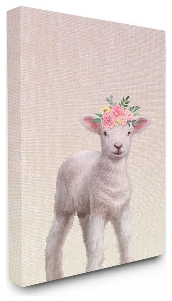 Baby Lamb Floral Rose Crown Girly Pink Nursery,1pc, Each 16 X 20