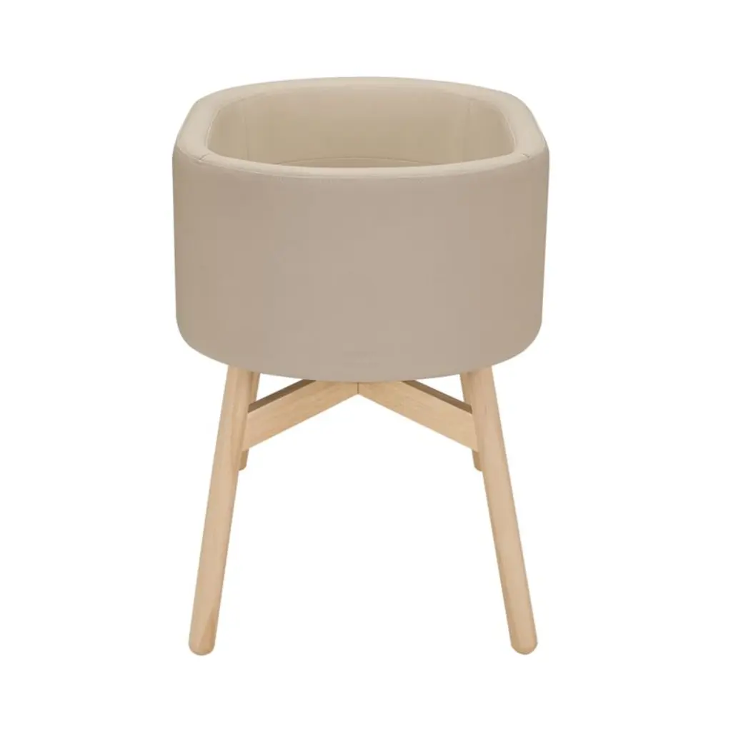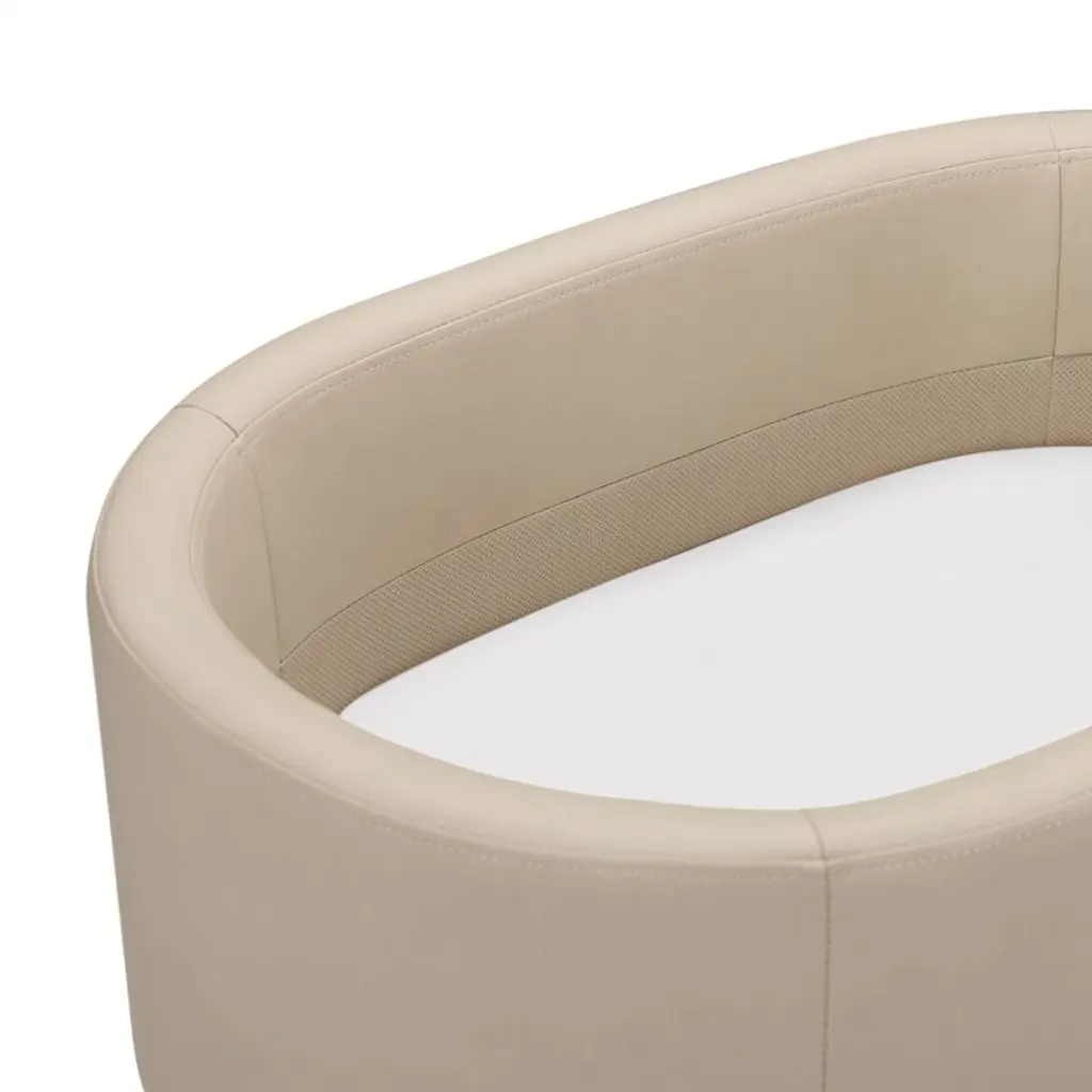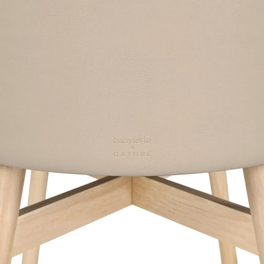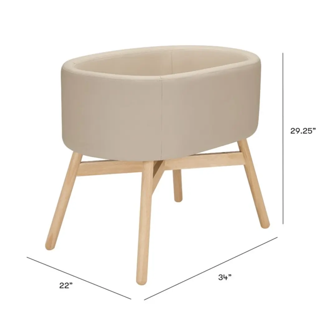 Give your newborn a beautiful first sleeping place with the Babyletto x Gathre Capsule Bassinet. It's upholstered with buttery-soft, tan vegan leather that's wipeable and waterproof for easy cleaning. The sleek, capsule-shaped basket sits on durable, rounded hardwood legs and includes a comfy padded insert. The mixed-material design will be at home pretty much anywhere, from the nursery to the family room or the parents' bedroom. The compact design is a smart choice for small spaces, and it's designed to grow with your little one: Once they've moved on to their crib, simply remove the bassinet's legs and it becomes stylish toy storage.
