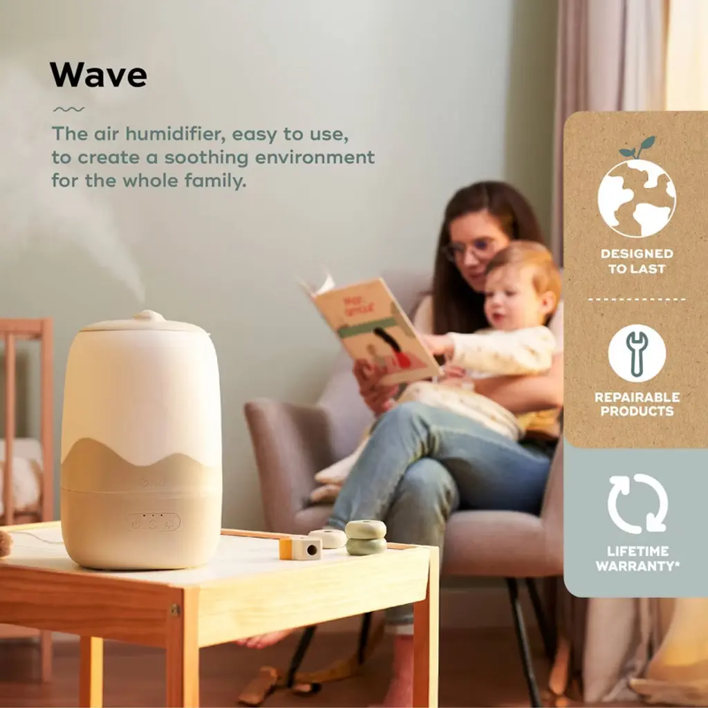 Create a perfect, calming space for your little one with the Cool Mist Wave Humidifier by Babymoov. With a generous 1.06-gallon (4L) capacity, it provides up to 26 hours of continuous mist to maintain optimal humidity, ensuring easier breathing and restful sleep for your baby. This versatile device is easy to control with just three buttons, allowing you to adjust the mist settings, select from 2, 4, or 8-hour timer options, and enjoy the safety of an automatic shut-off feature when the water runs low. The top-fill design prevents spills, and cleaning is a breeze with the included brush. Beyond humidifying, the Wave Air Humidifier doubles as a soothing nightlight with seven calming colors that can rotate or stay fixed. You can use the nightlight independently or in tandem with the humidifier for a peaceful, multi-functional setup. Its 360° rotating nozzle and two mist output settings let you direct the cool mist exactly where it’s needed, while the option to add essential oils fills the room with relaxing aromas. Despite its impressive functionality, it operates quietly at less than 32 decibels, ensuring your baby enjoys a peaceful, undisturbed sleep.