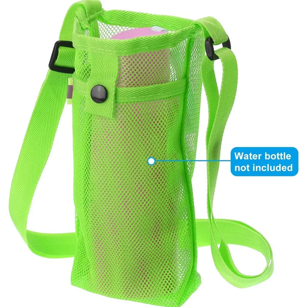 Babyyer Water Bottle Bag Mesh Portable Bottle Holder Carrier Adjustable Shoulder Strap For Sports Hiking Camping, Green