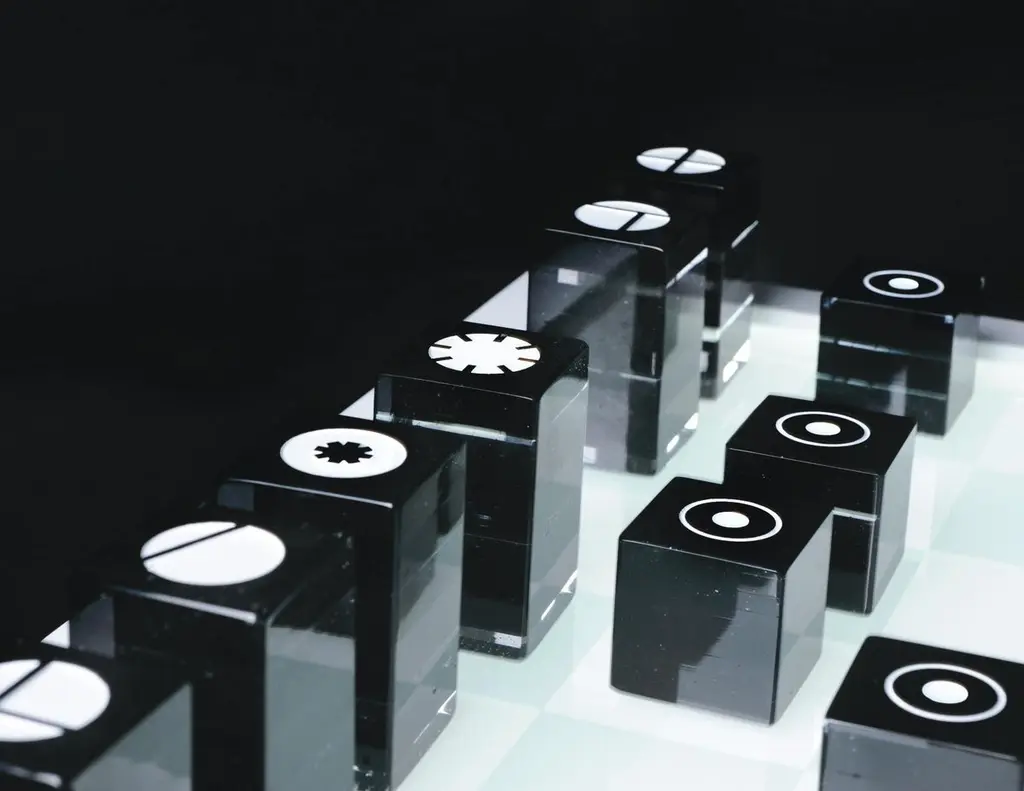 Back Light Chess Board With Cubic Black And White Chess Pieces
