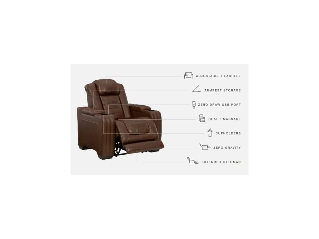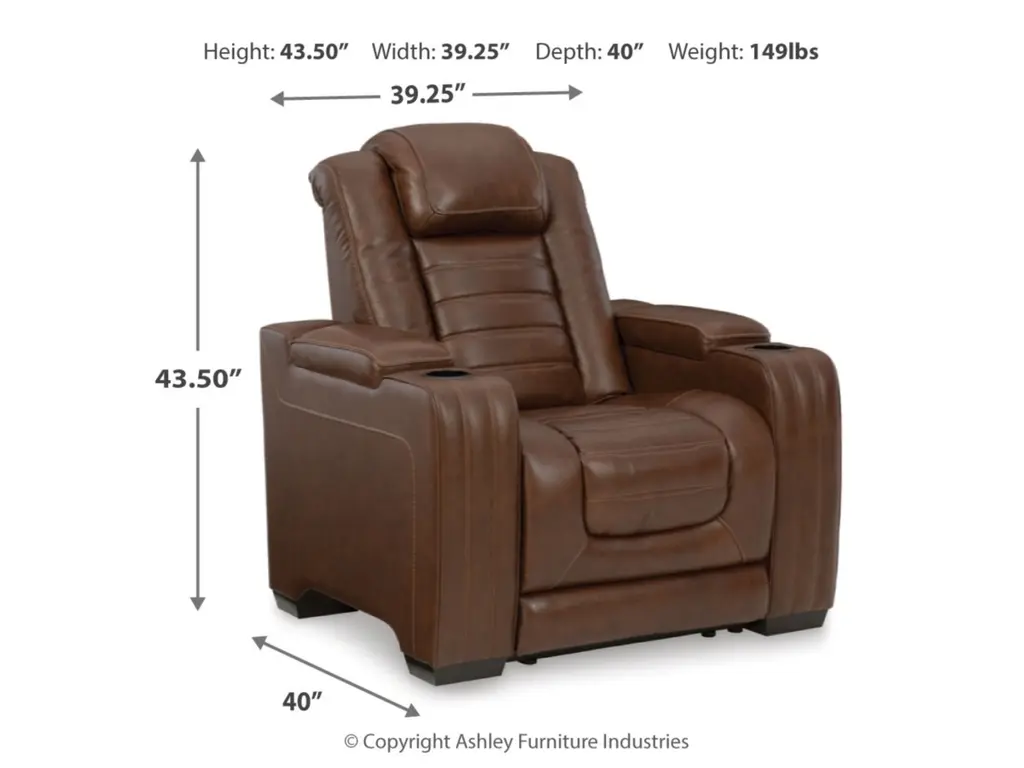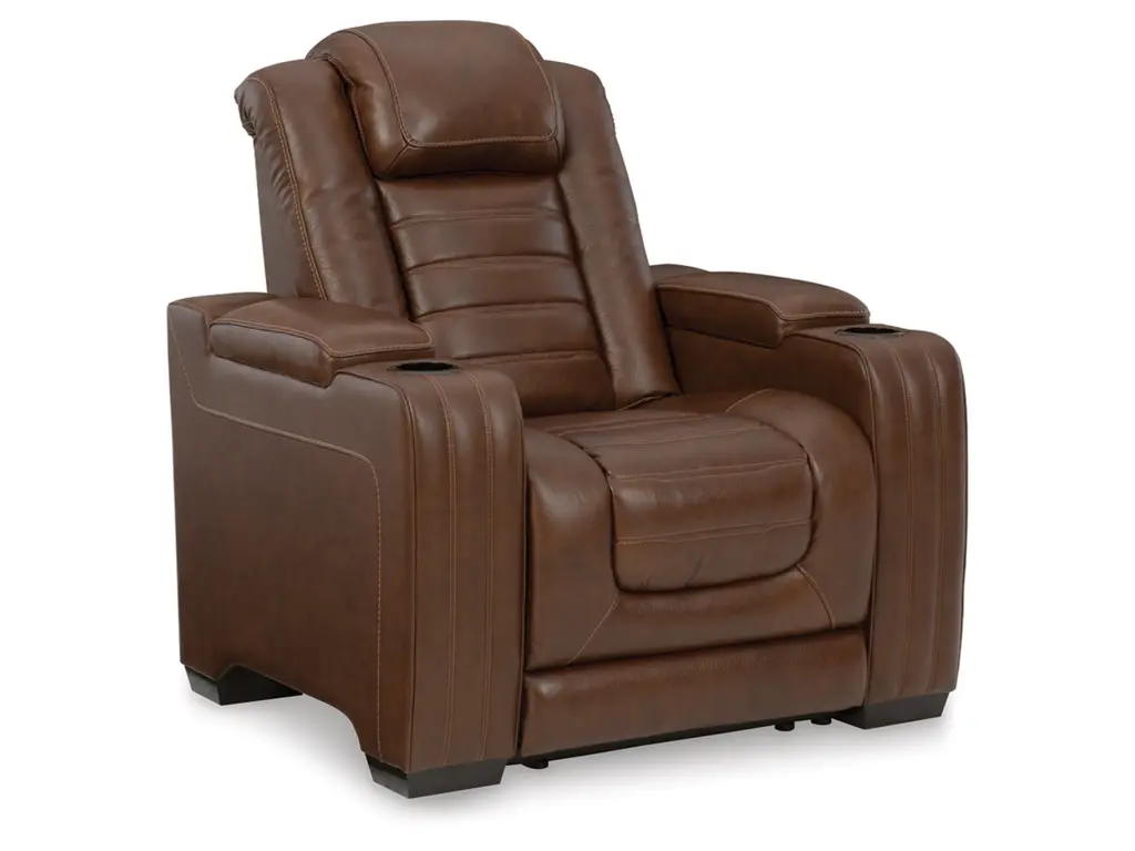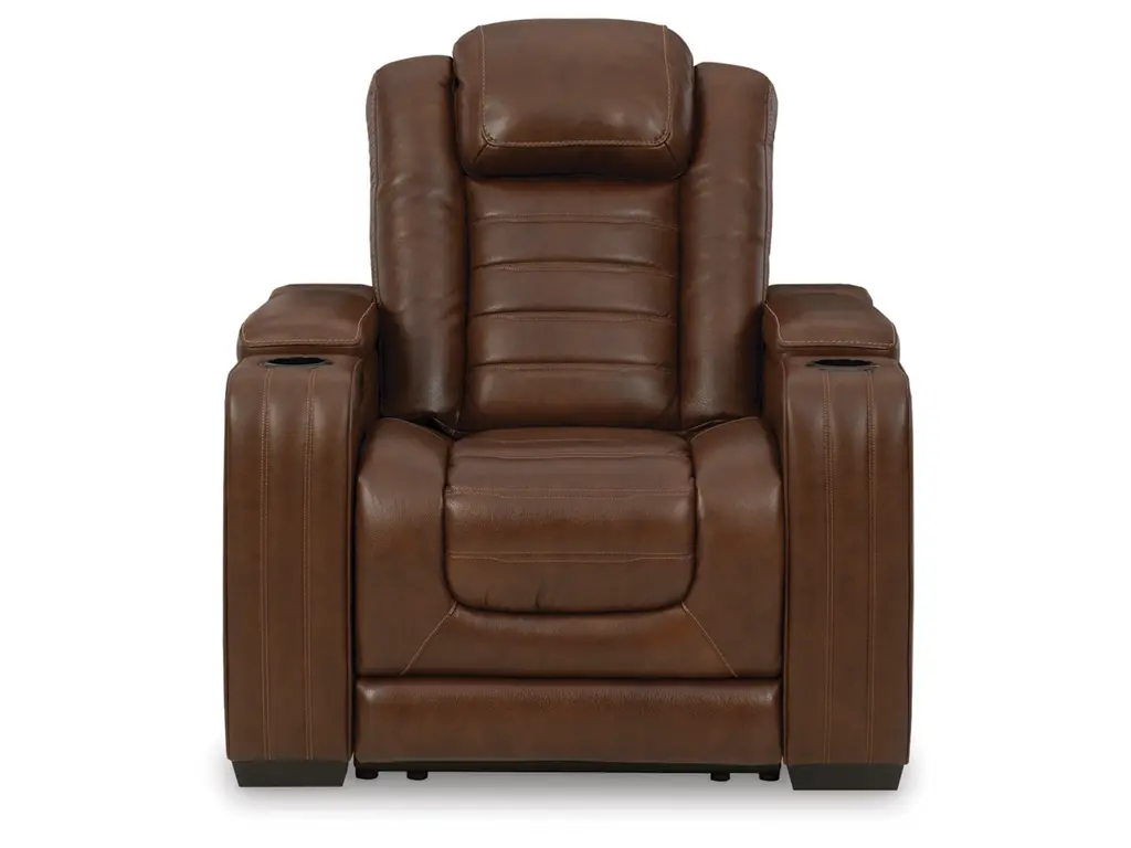 With its fashion-forward sense of style, the Backtrack power recliner has you covered with high-tech advancements and down-home comfort. Its combination leather and faux leather upholstery keeps luxury comfortably within budget. Love being pampered? With the touch of a button, experience the pure bliss of an air massage system (with three settings), or chill out with the heated seat element. Distinctive elements of this power recliner include contemporary waterfall tufting that beautifully goes with the flow and a zero-gravity mechanism further raising the ottoman for better blood flow.