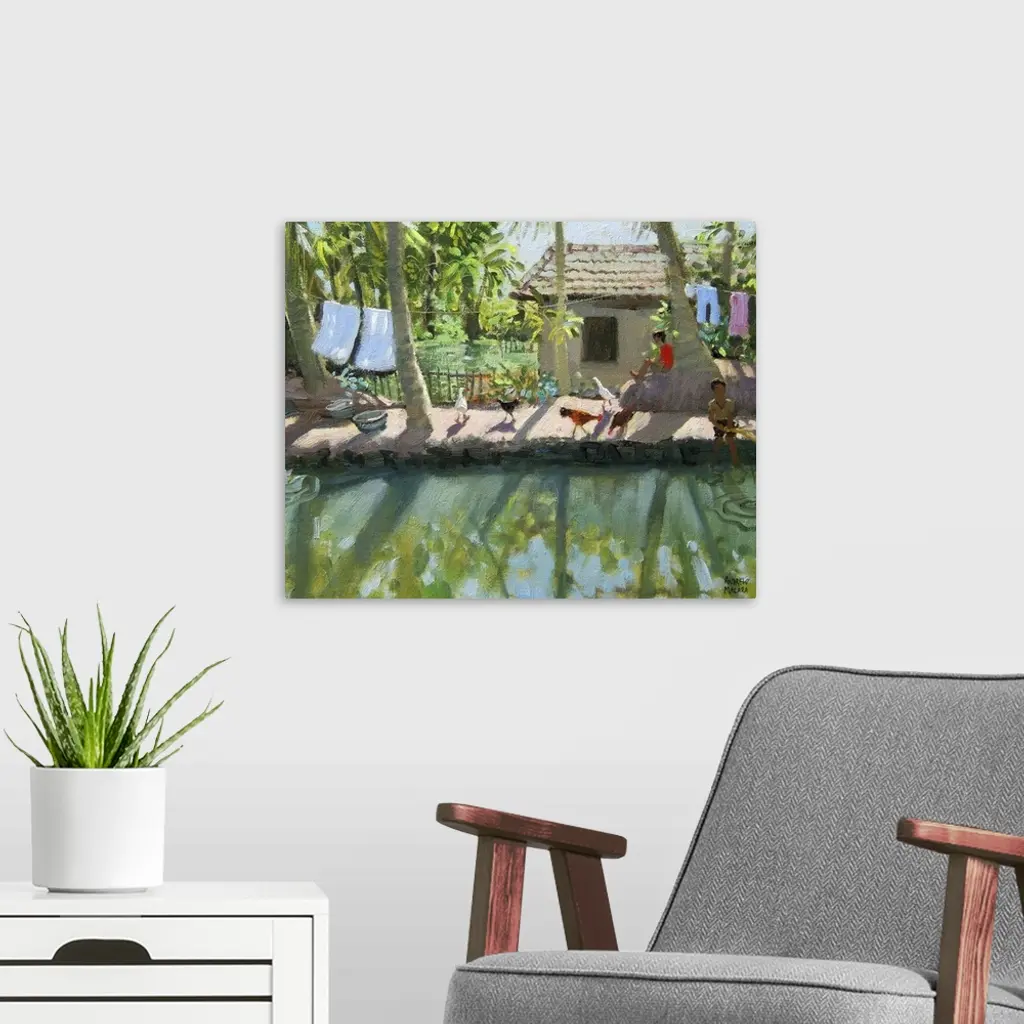 Backwaters, India, oil on canvas, by Andrew Macara.