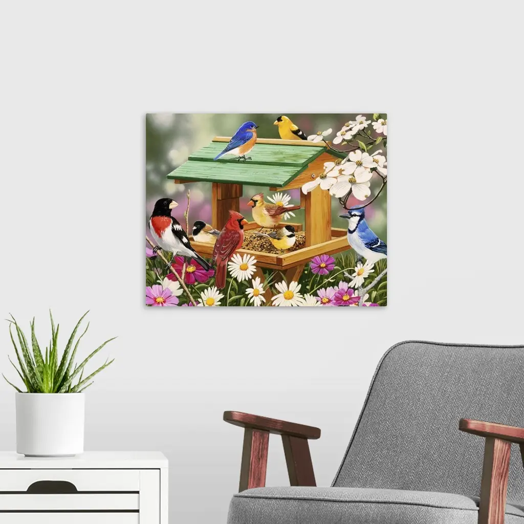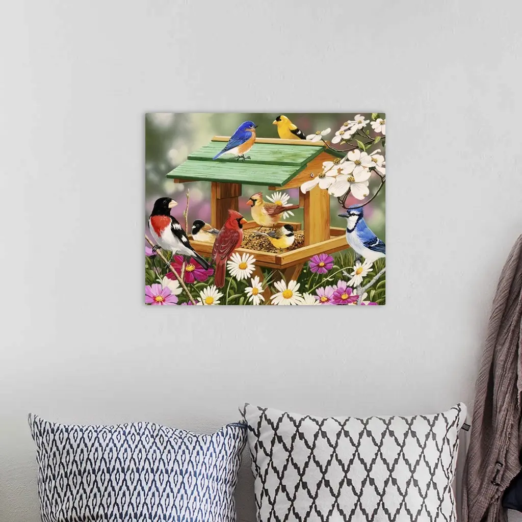 Backyard Birds Spring Feast wall art for home and office decor. Discover canvas art prints, photos, mural, big canvas art and framed wall art in GreatBigCanvas.com's varied collections.