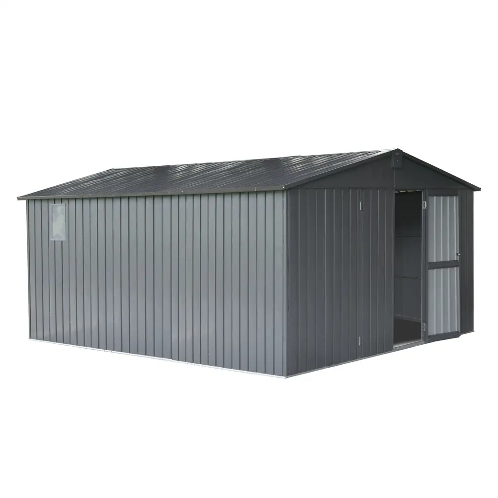 Backyard Storage Shed 11' X 12.5' With Galvanized Steel Frame & Windows, Outdoor Garden Shed Metal Utility Tool Storage Room - Grey