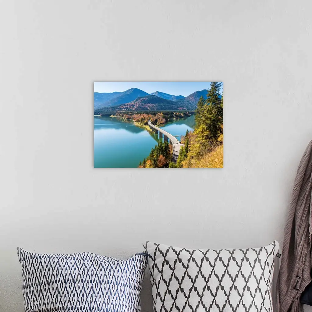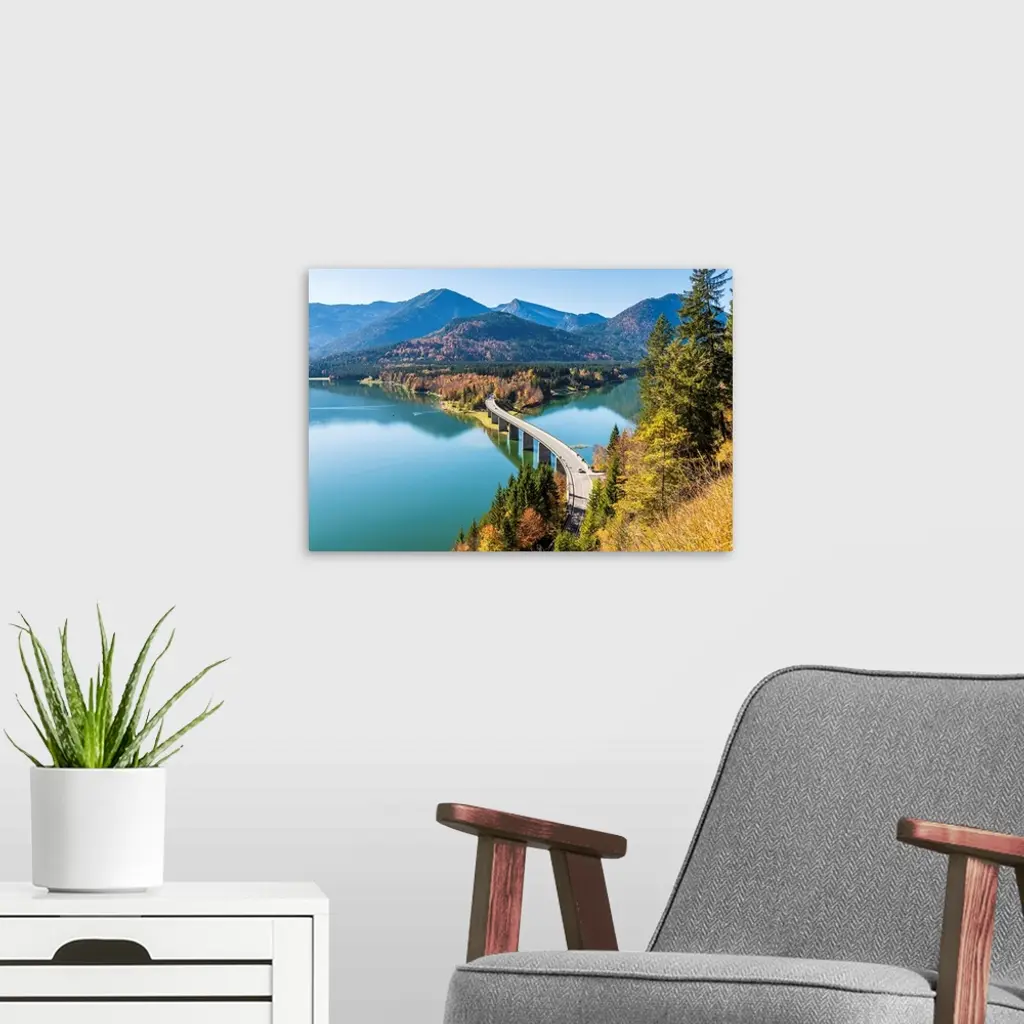 Bad Tolz, Bavaria, Germany, Europe. Sylvenstein Bridge In Autumn Season