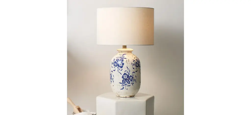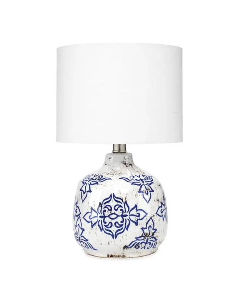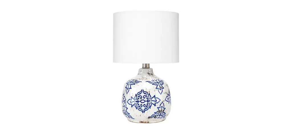 This enchanting Baffin Table Lamp is an accent lamp with timeless style. The vintage floral pattern on the antiqued blue & white glaze, is a great accent to any room.