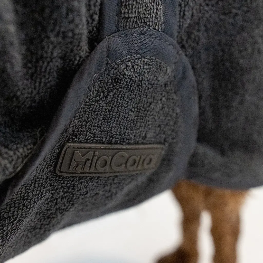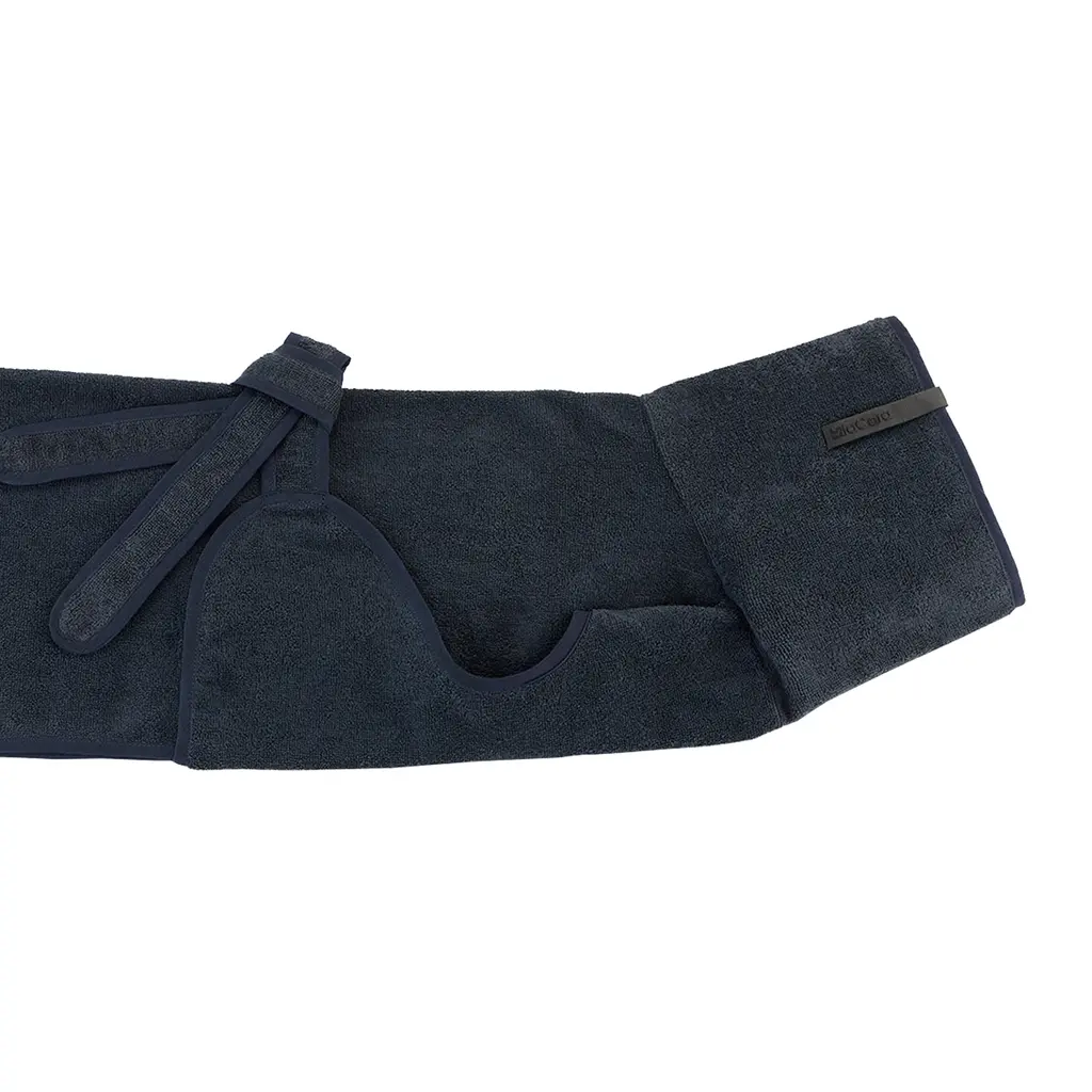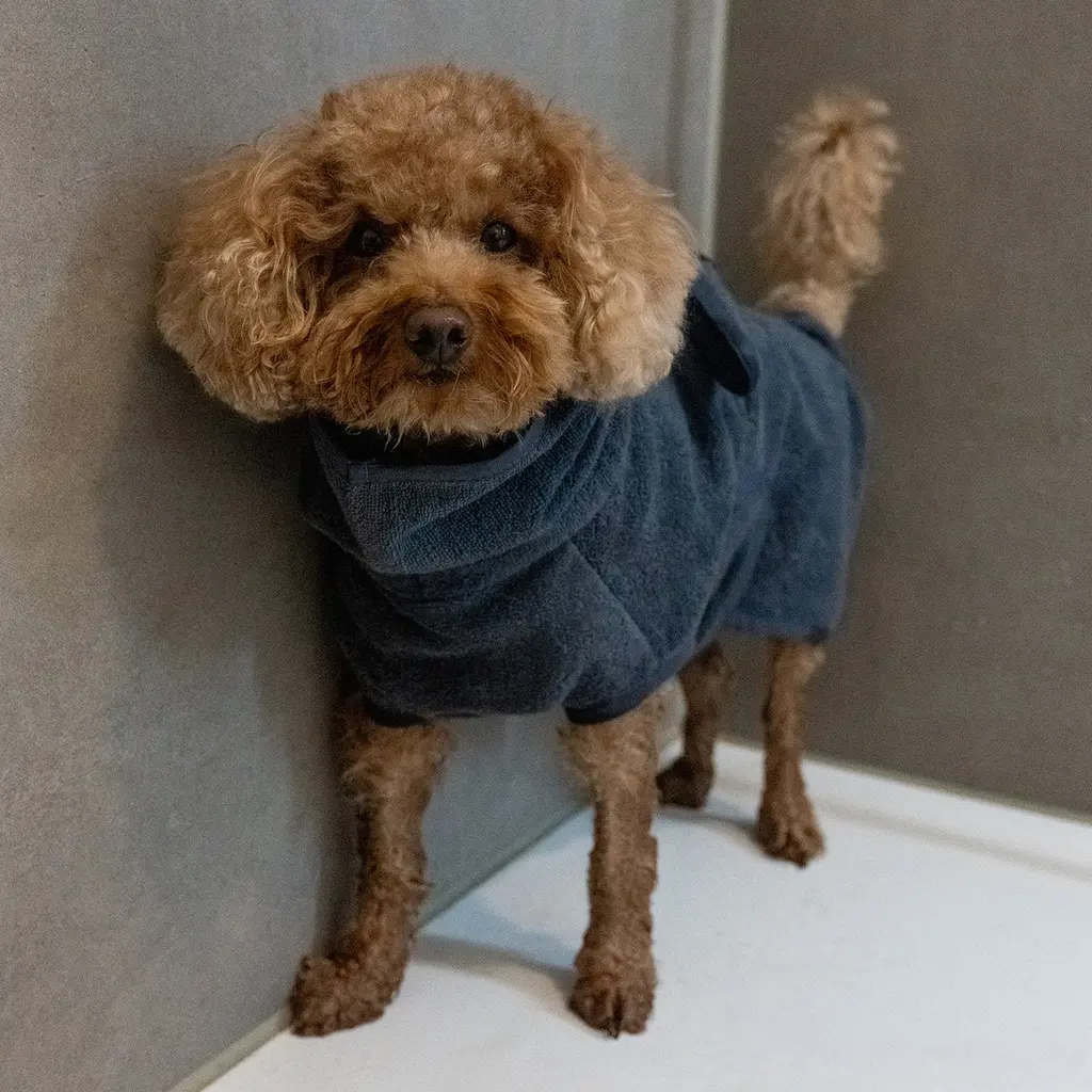 Keep your dog dry and clean with the Bagno bathrobe, made from soft, organic terrycloth. This bathrobe effectively absorbs moisture and dirt from your dog’s coat. The large coverage area helps to prevent splashes when your dog shakes off. For very wet fur, start with the Mano terrycloth towel to remove extra water. The bathrobe comes in ten sizes, offering a perfect fit with its ergonomic design and adjustable back-tie strap. After use, hang it up with the convenient logo strap to dry.