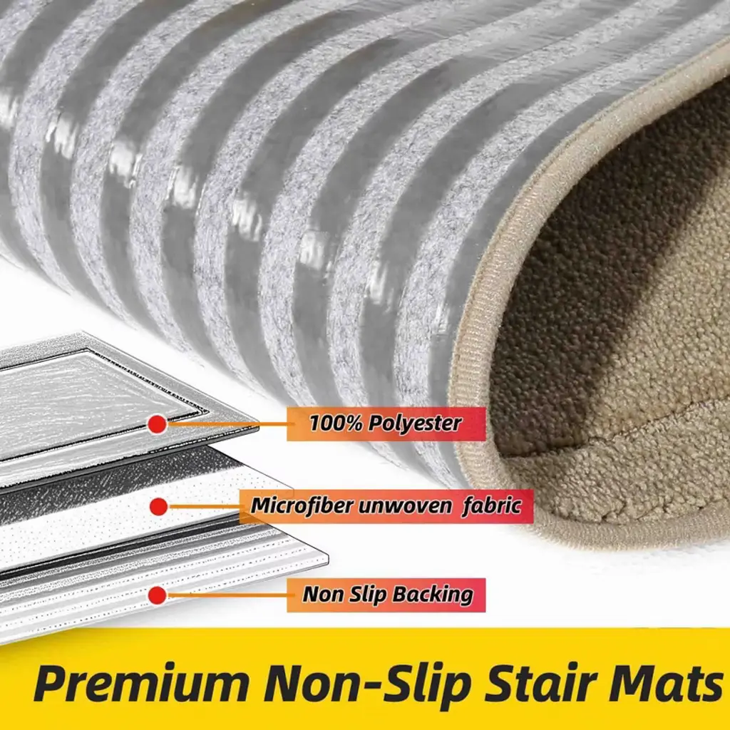 This non-slip stair tread set brings comfort, safety, and peace of mind to your home. Designed with our patented striped anti-slip backing, each tread stays firmly in place¡ªno slipping, sliding, or shifting, even in high-traffic households with kids, seniors, or pets.