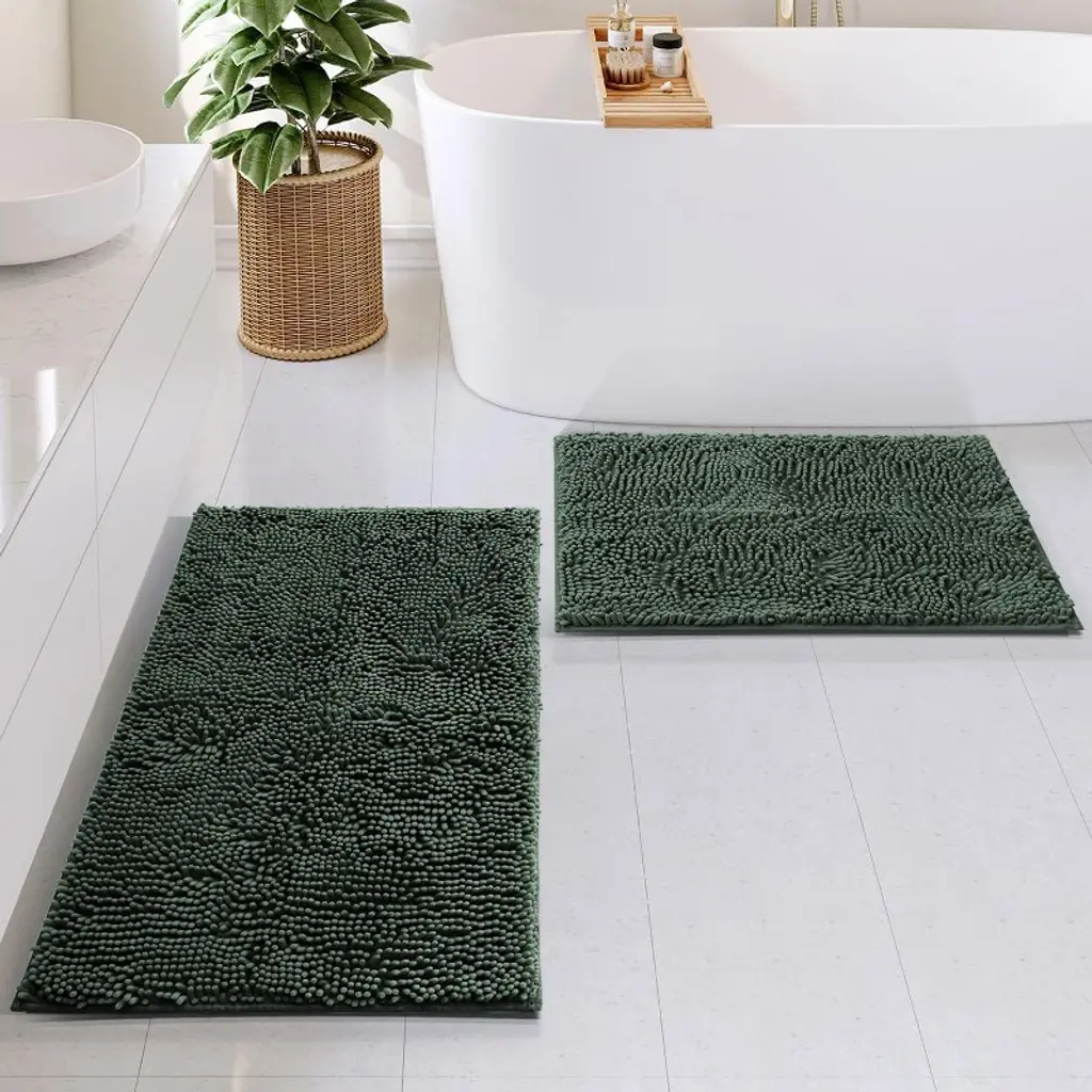Bagokie 2 Piece Non-slip Bathroom Rugs Mats Set(17"x24"+20"x32"), Hunter Green