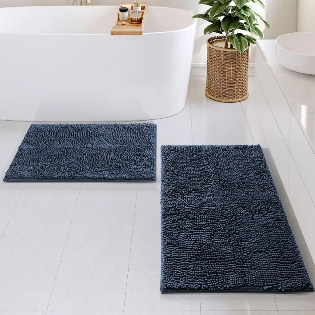 Bagokie 2 Piece Non-slip Bathroom Rugs Mats Set(17"x24"+20"x32"), Navy Blue