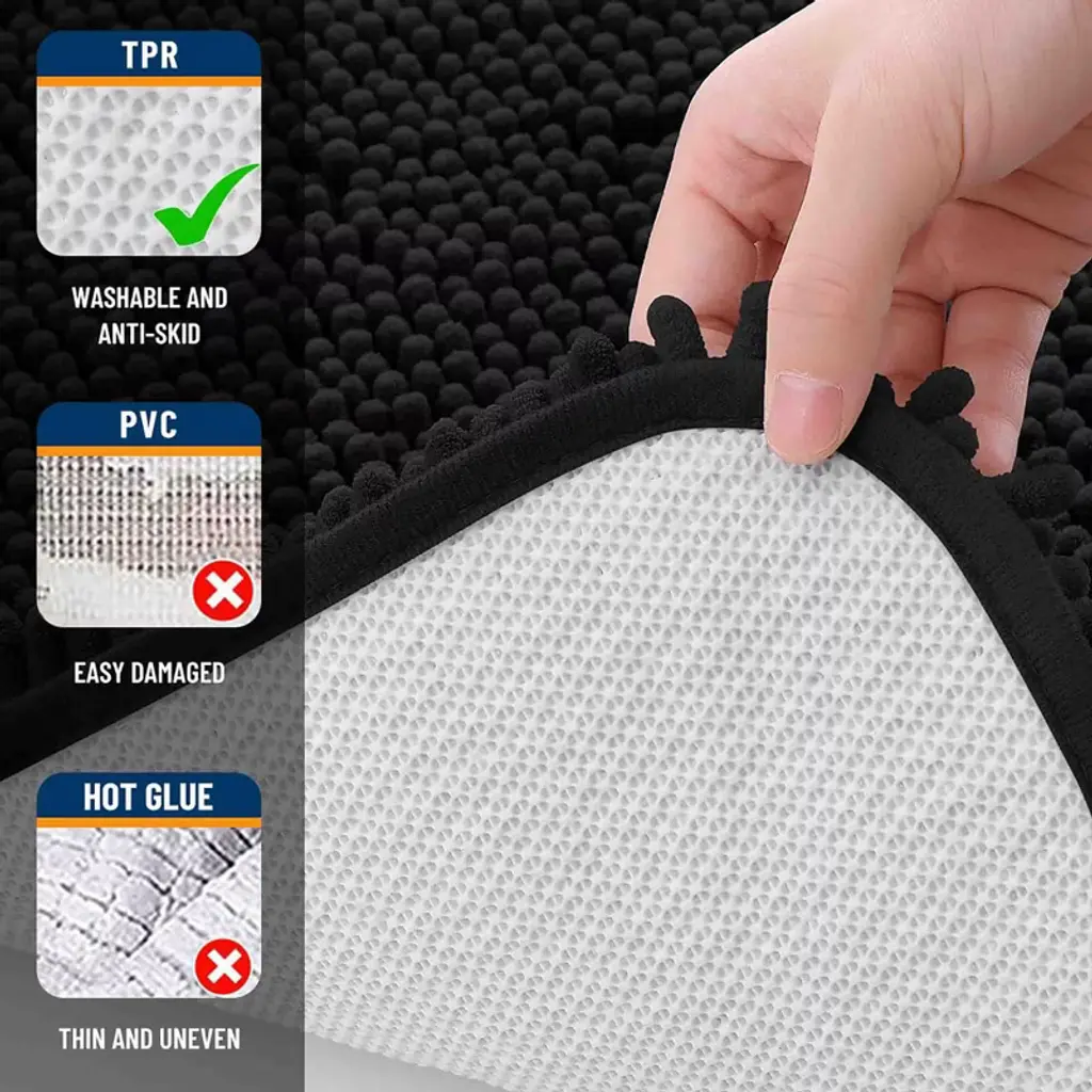 Bagokie 3 Piece Chenille Bathroom Rug Set, Black
