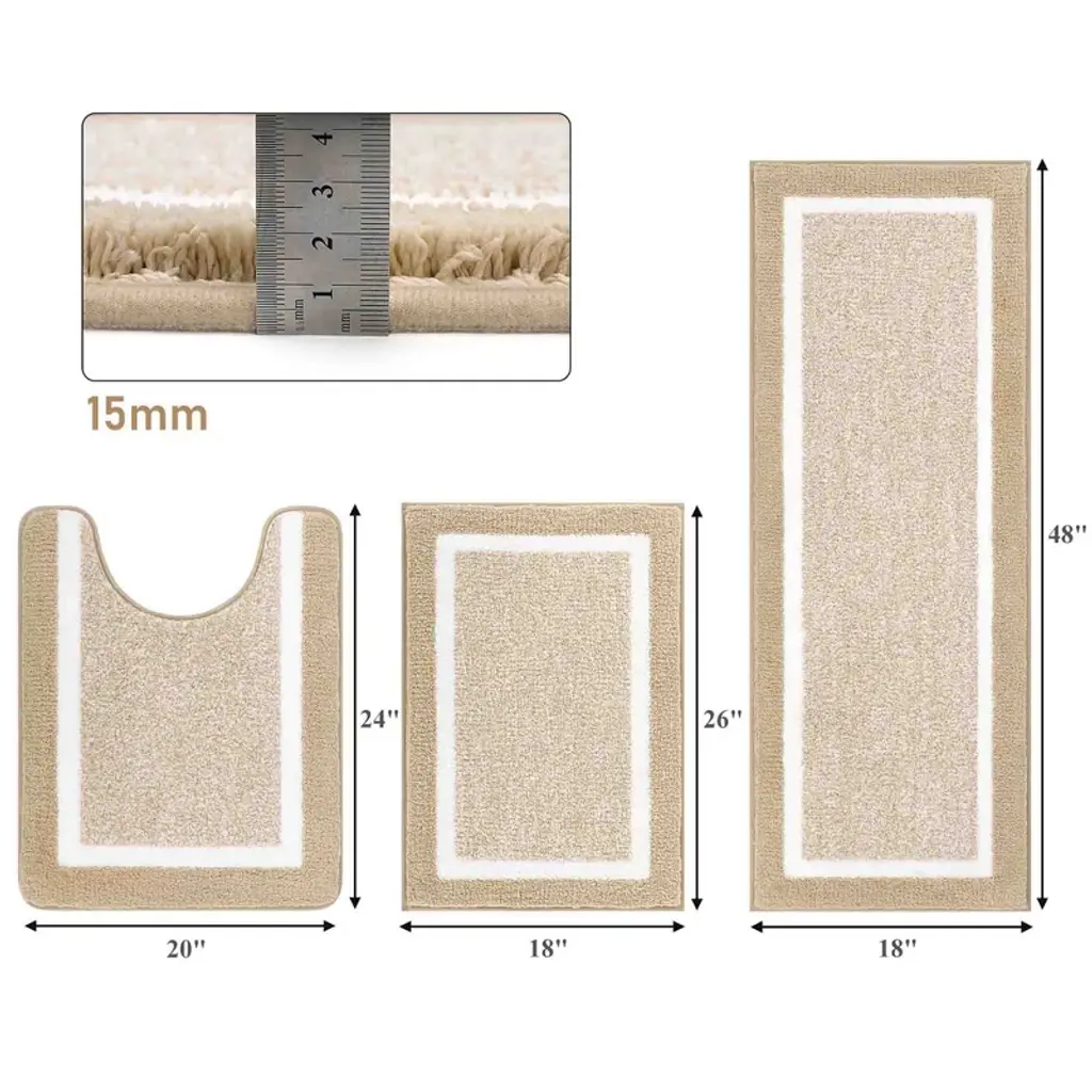 Bagokie 3 Piece Microfiber Bathroom Rug Set, Beige