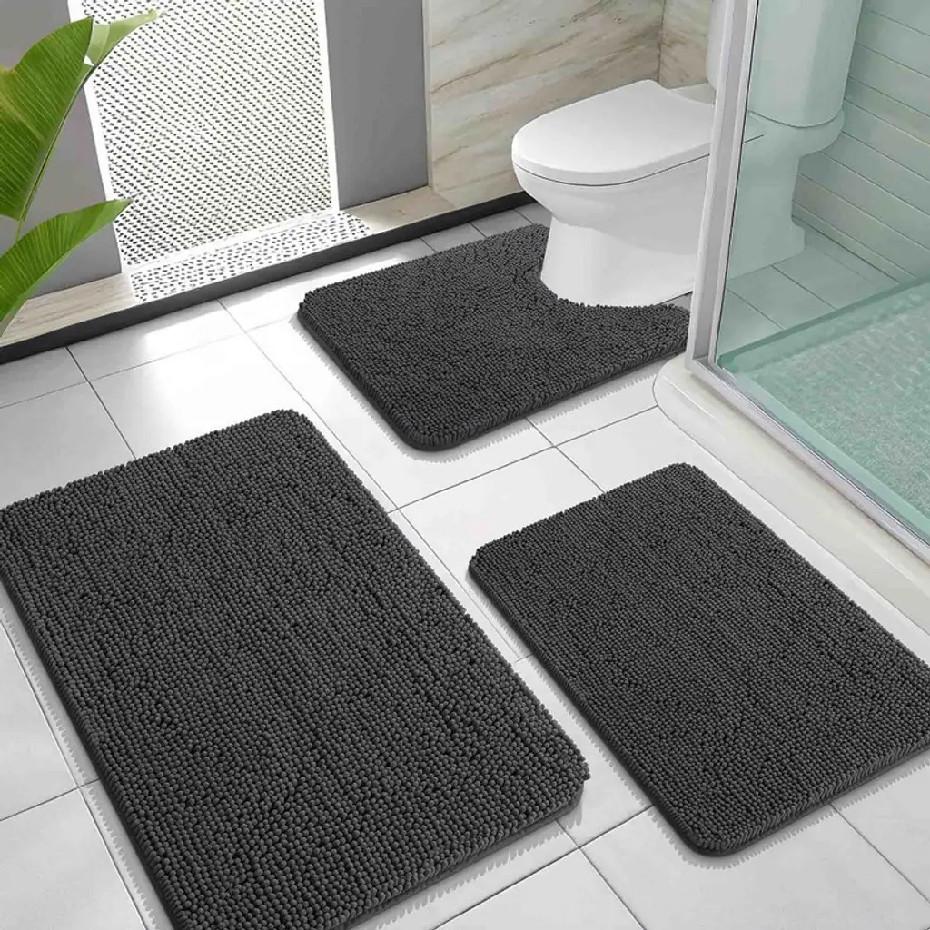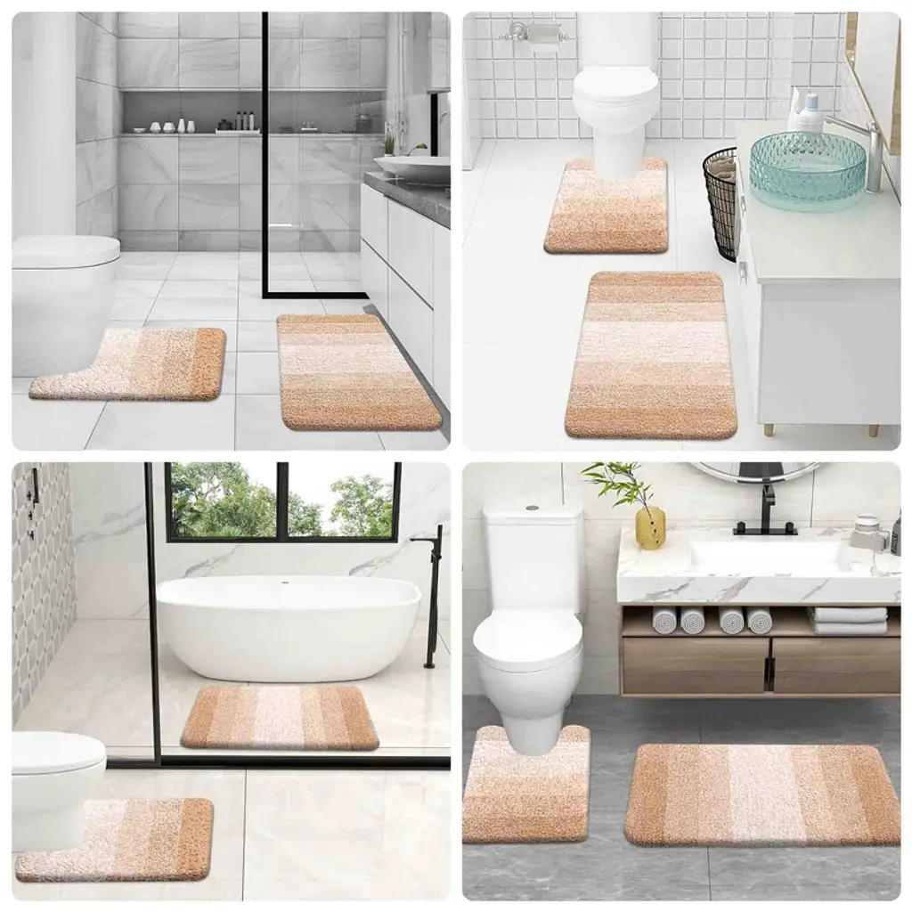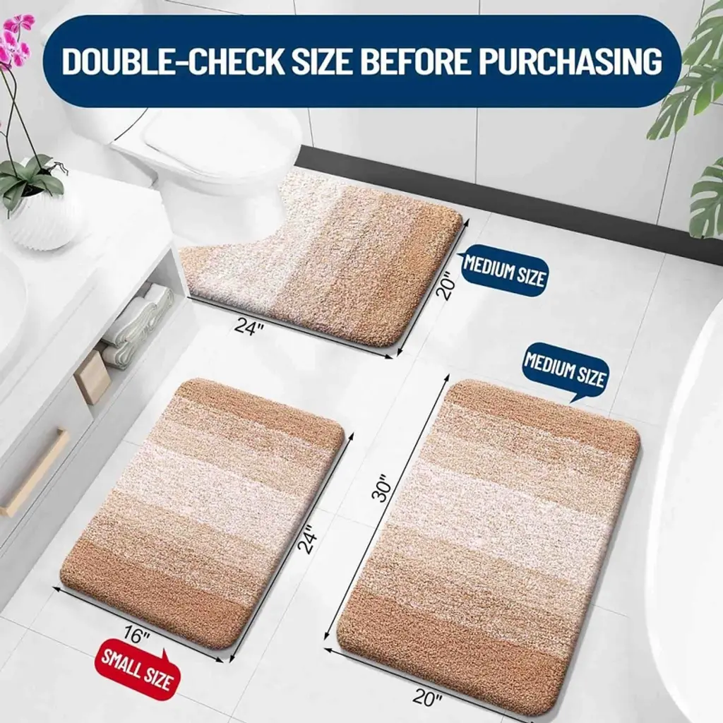 Bagokie 3 Piece Microfiber Bathroom Rug Set, Beige