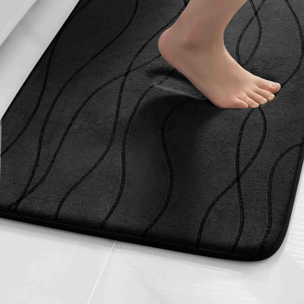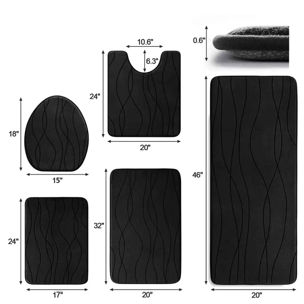 Bagokie 5 Piece Memory Foam Bathroom Rug Set, Black