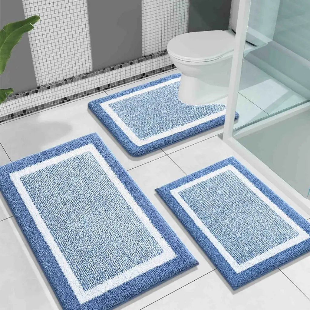 This 5-piece memory foam bath rug set brings comfort and coordination to your bathroom routine. Set includes a large 20" x 46" bath rug, 32" x 20" and 24" x 17" mats, an 18" x 16" small mat, and a 24" x 20" U-shaped counter rug¡ªperfectly sized to fit your tub, sink, toilet, and entryway.