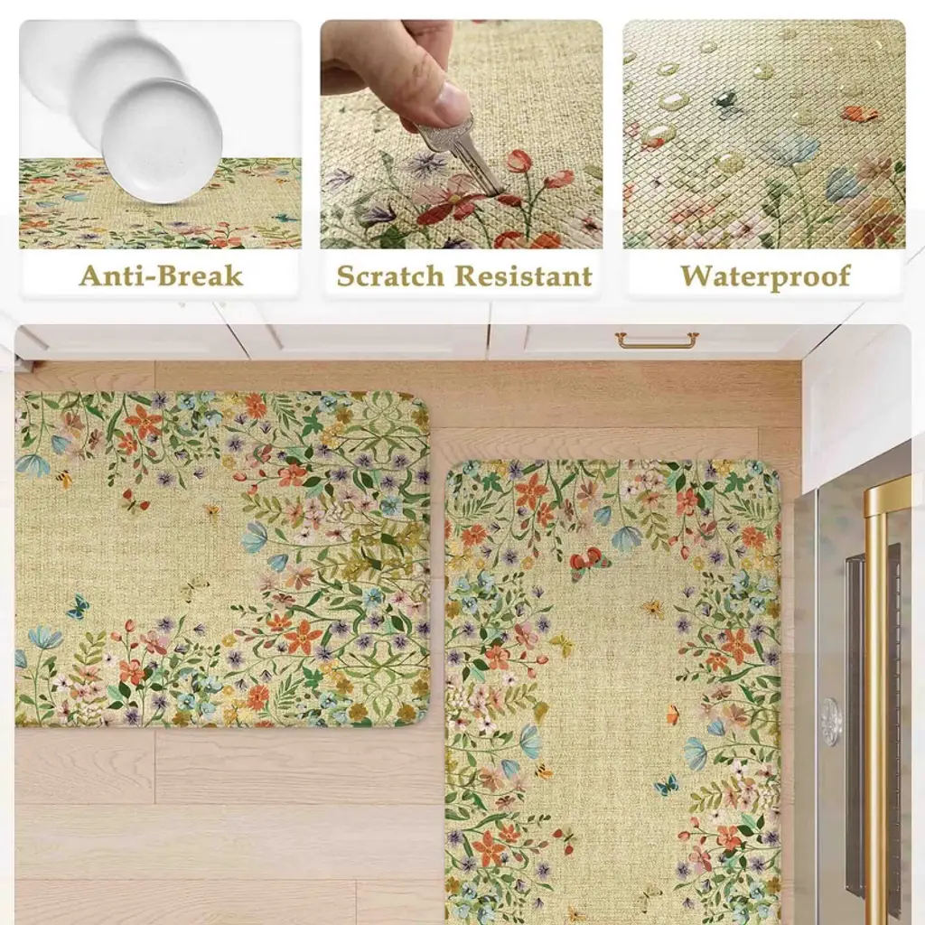 This 2-piece anti-fatigue kitchen mat set is designed to make long hours of standing more comfortable. With 0.47-inch (12 mm) thick cushioning, it helps reduce pressure on your feet, knees, and back, so you can enjoy cooking, working, or doing chores with ease.