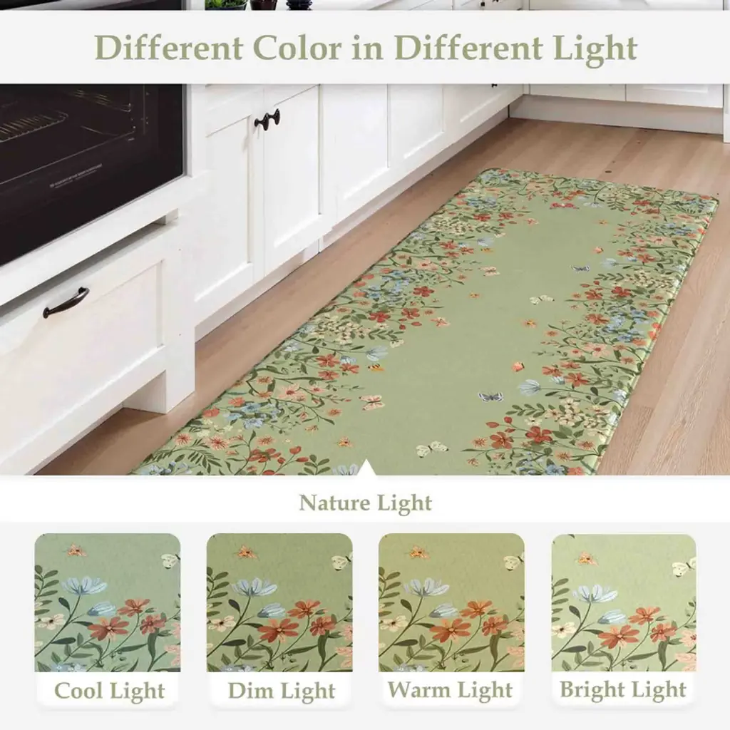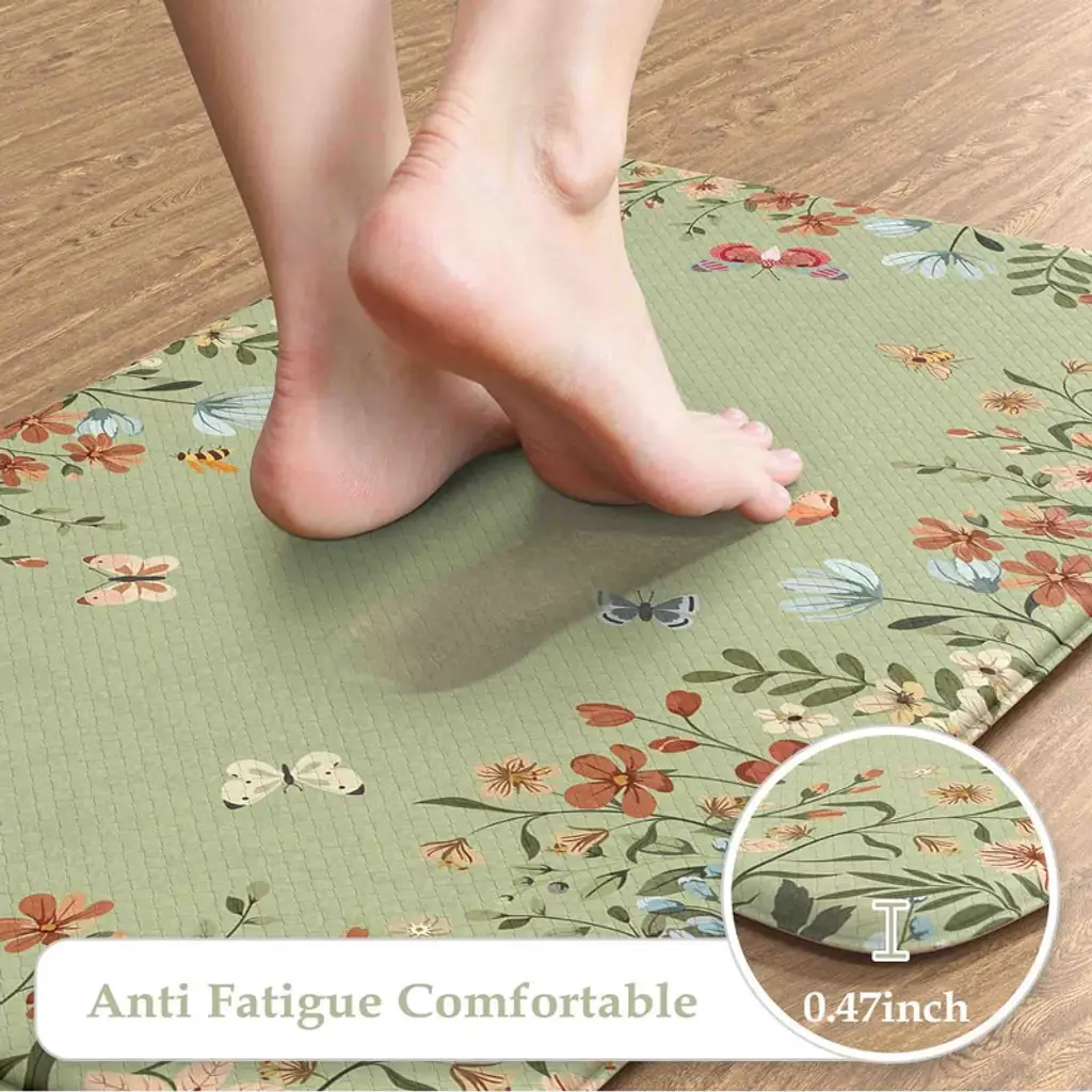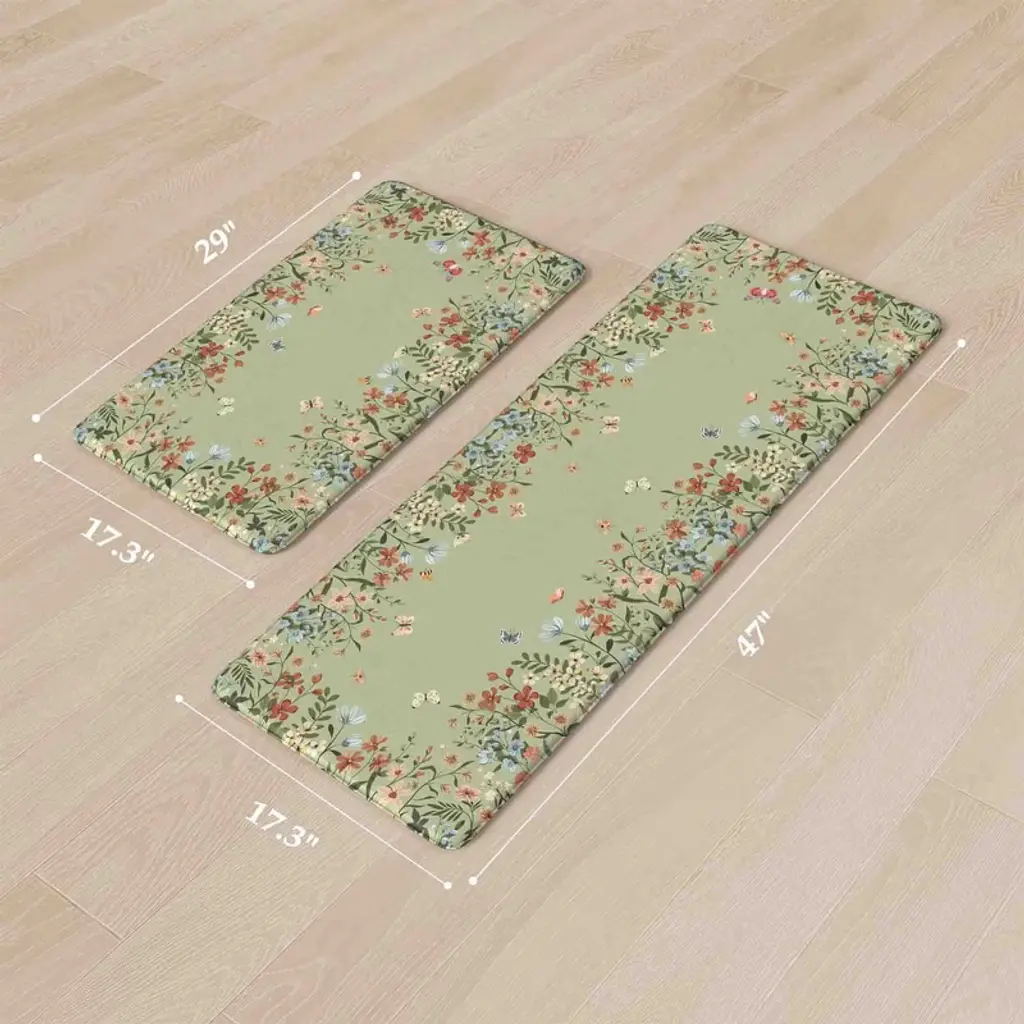 Bagokie Boho Anti Fatigue Kitchen Mat Set Of 2, Green