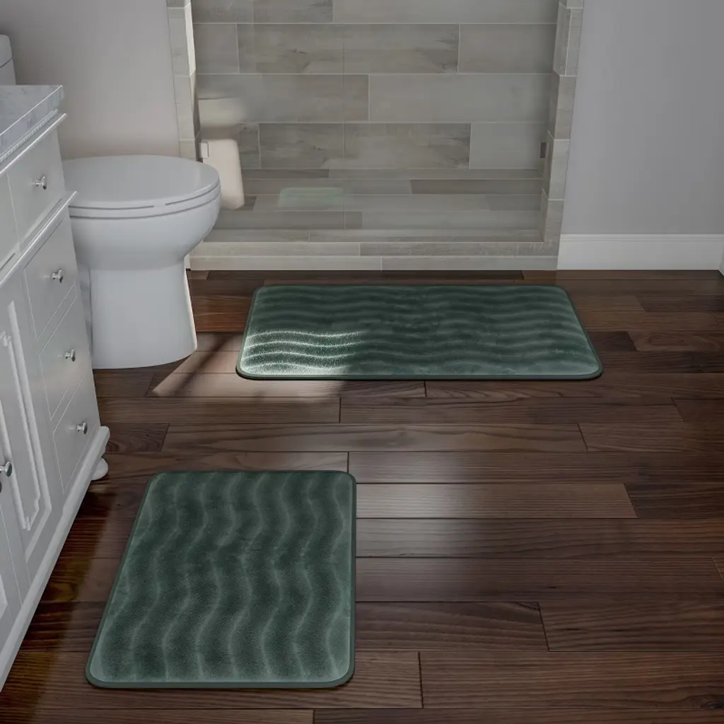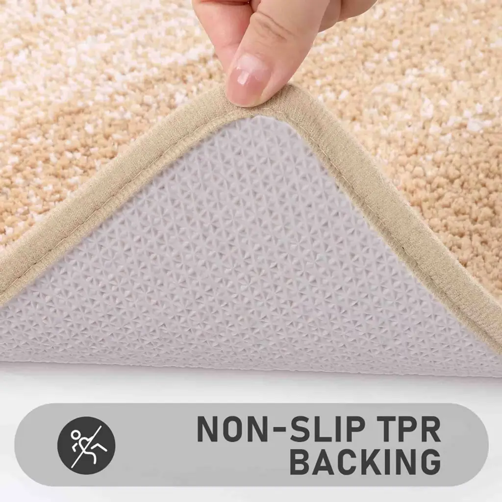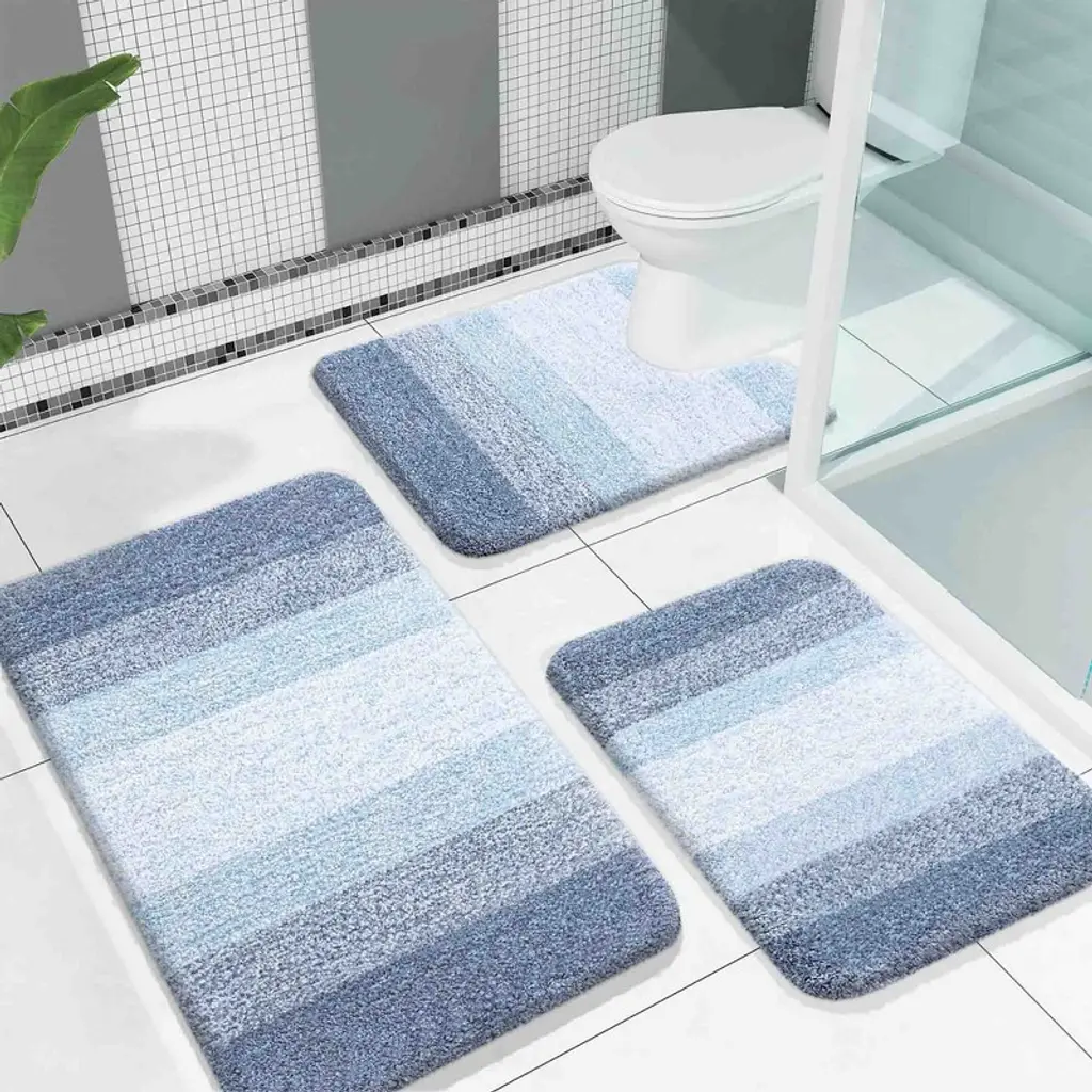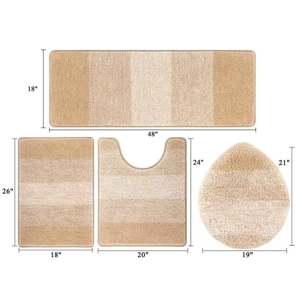 This 4-piece ultra soft bath rug set offers cozy comfort and functional style for your bathroom. Made with plush, high-density microfiber, each mat feels cloud-soft underfoot¡ªperfect for starting and ending your day with a touch of luxury. The elegant gradient design adds a modern pop of color while elevating your space with a spa-like vibe.