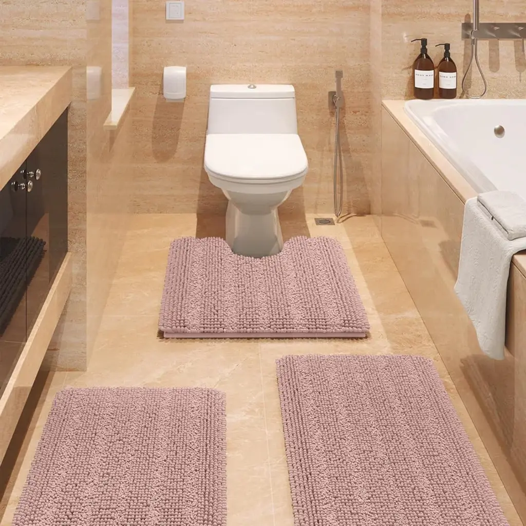 Bagokie Ultra Soft 4-piece Microfiber Bathroom Rug Set, Beige