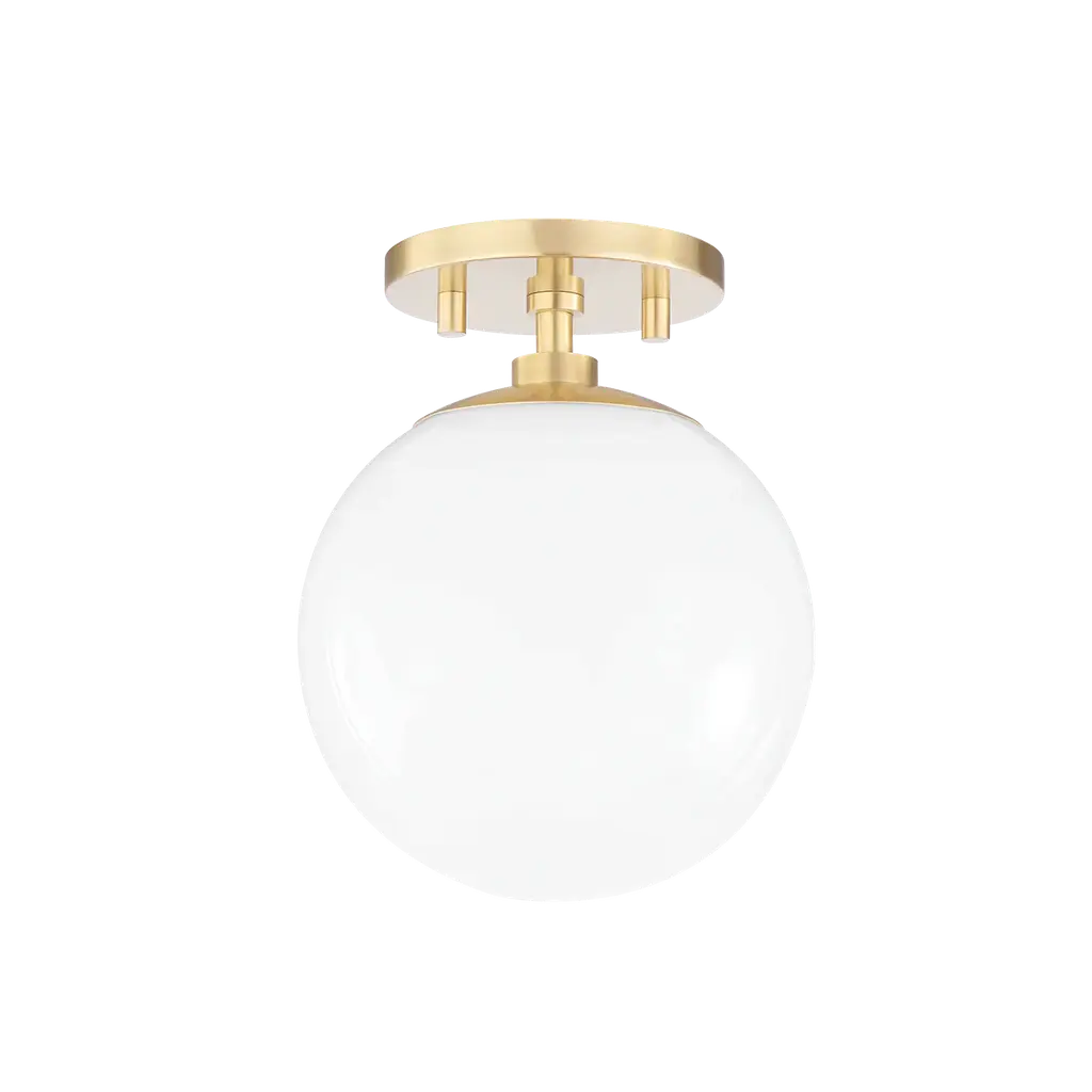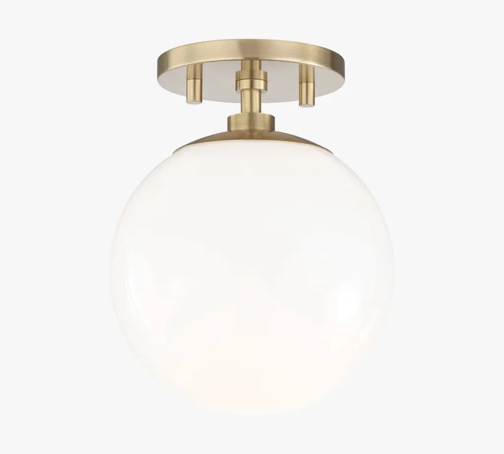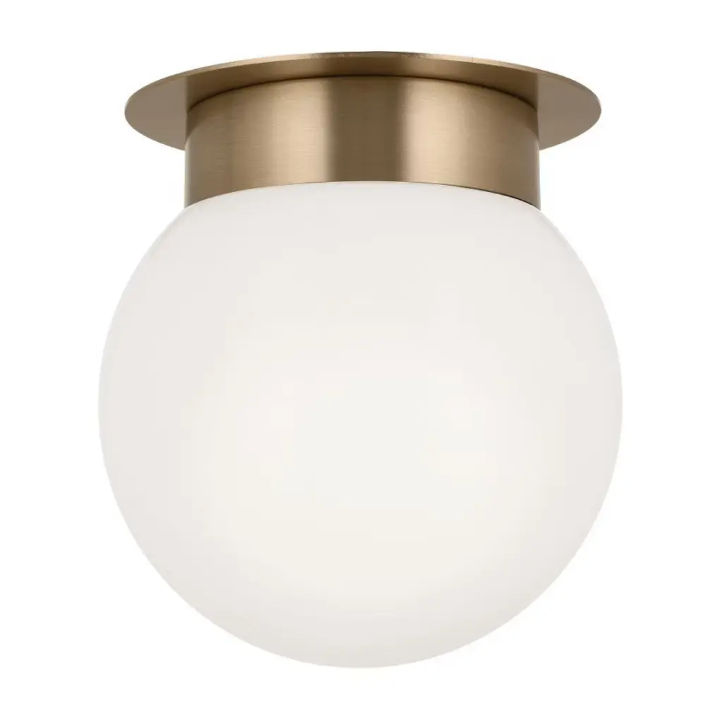 Scandinavian minimalist design principles are met with upscale finishes in the Baird family. A graphic circular metal backplate frames each oversized glass orb, creating modern silhouettes for a bath or powder room. Designed for versatility, Baird can be wall or ceiling-mounted with one to four light options available. The LED-lit shades diffuse the bright task lighting while reflecting off the timeless Aged Brass or sleek Polished Chrome finishes.