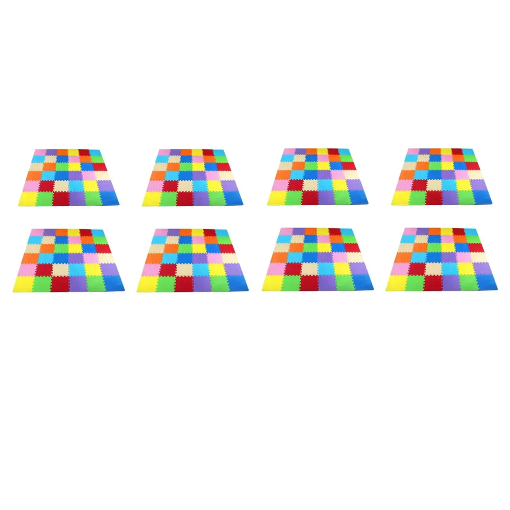 Keep playtime safe, happy, and comfortable with this 8-pack of BalanceFrom 9 Color Extra Thick Interlocking Puzzle Foam Exercise Play Mats. Make playtime safer with 36-square feet of comfortable and colorful floor coverage. Coming in 9 colors, these interlocking play mats feature a non-slip design to stay in 1 place on the floor. Mats measure 0.4-inches thick to comfortably cushion your spine, hips, knees, and elbows to protect against rambunctious energy or accidental falls. Each mat gives 1-square foot of coverage and interlocks in whatever puzzle pattern you need to secure your floor space. Included edges help define a single border or open room to make several to suit your floor plan and play space. Moisture-blocking technology paired with high-quality EVA foam simplifies cleanup of accidental (or intentional!) spills. The foam tested free of lead, BTA's, and phthalates while meeting or exceeding US toy safety standards. For older audiences or added fun, link these squares together to form tunnels, boxes, or the ultimate fort. Transform your daycare, home playroom, or after-school program with these 8 BalanceFrom Extra Thick Interlocking Puzzle Foam Exercise Play Mats. Transform your play space with added comfort, safety, and colorful fun with this set of 8 play mats Featured in bright blue, green, yellow, and red, this interlocking each mat set covers up to 36-square feet of play space Extra edges included to define a single area or multiple areas with clean edges Safe EVA foam free of lead, BPA's, and phthalates with easy-clean surface simplifies cleanup of accidental or purposeful spills Non-slip surface and 0.4-inch thick design protects from falls, bumps, and bruises Material: EVA foam Color: Multicolored Dimensions (L x W x H): 36 x 36 x 0.4 inches Weight: 4 pounds Manufacturer warranty: 2-year warranty Quantity: 8