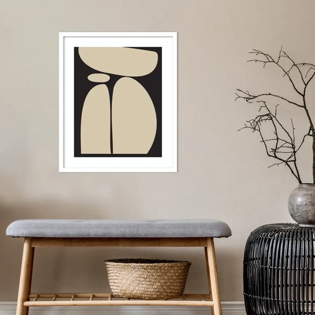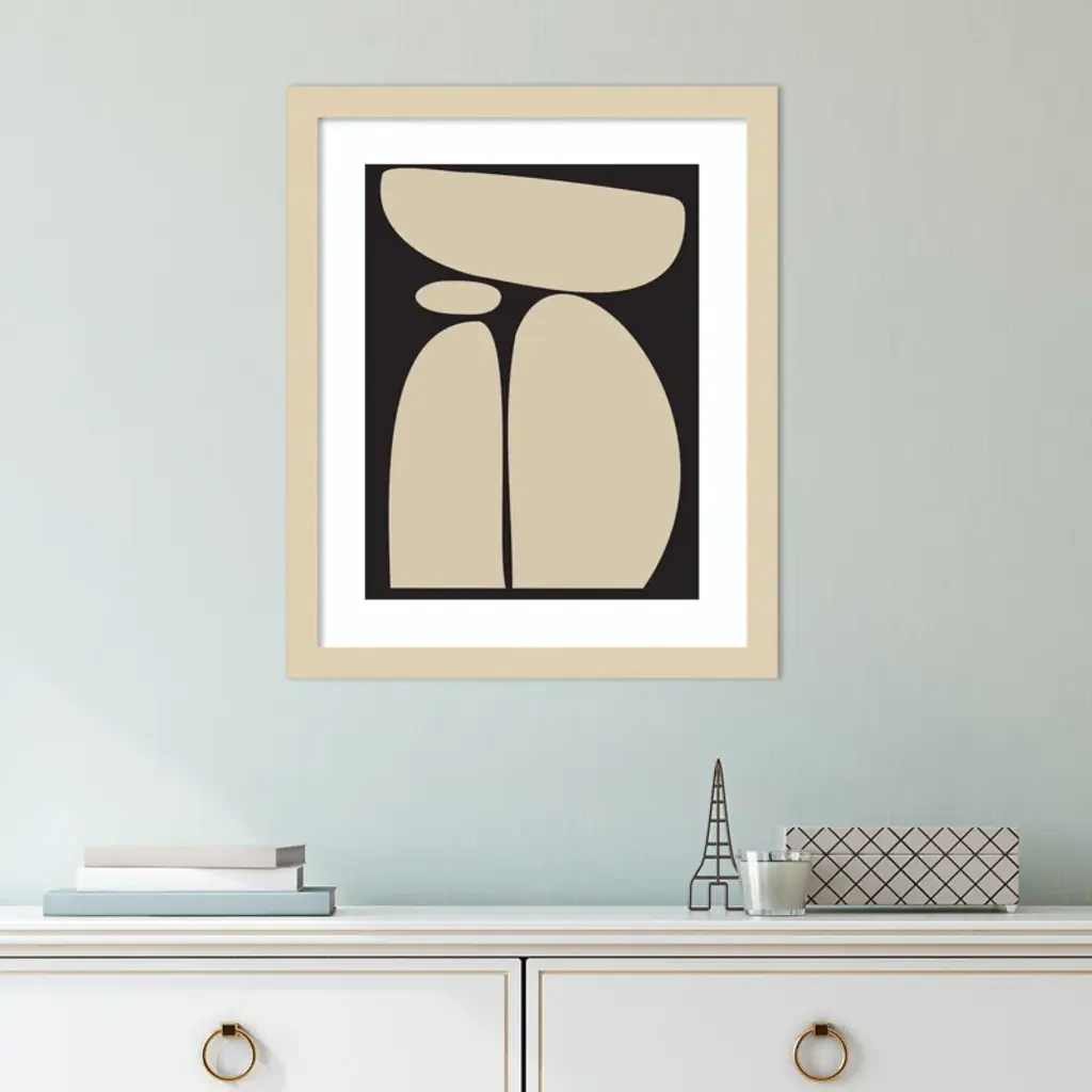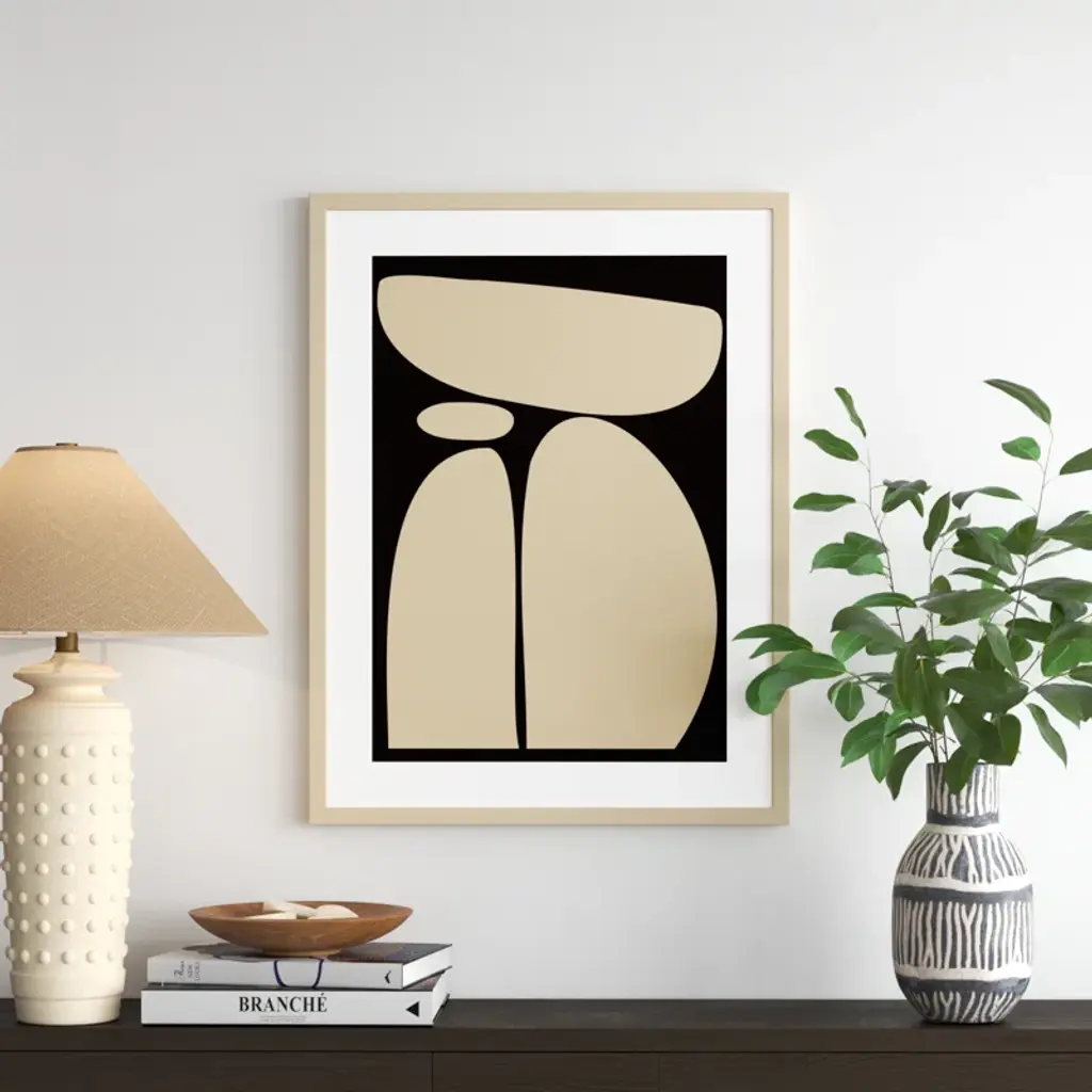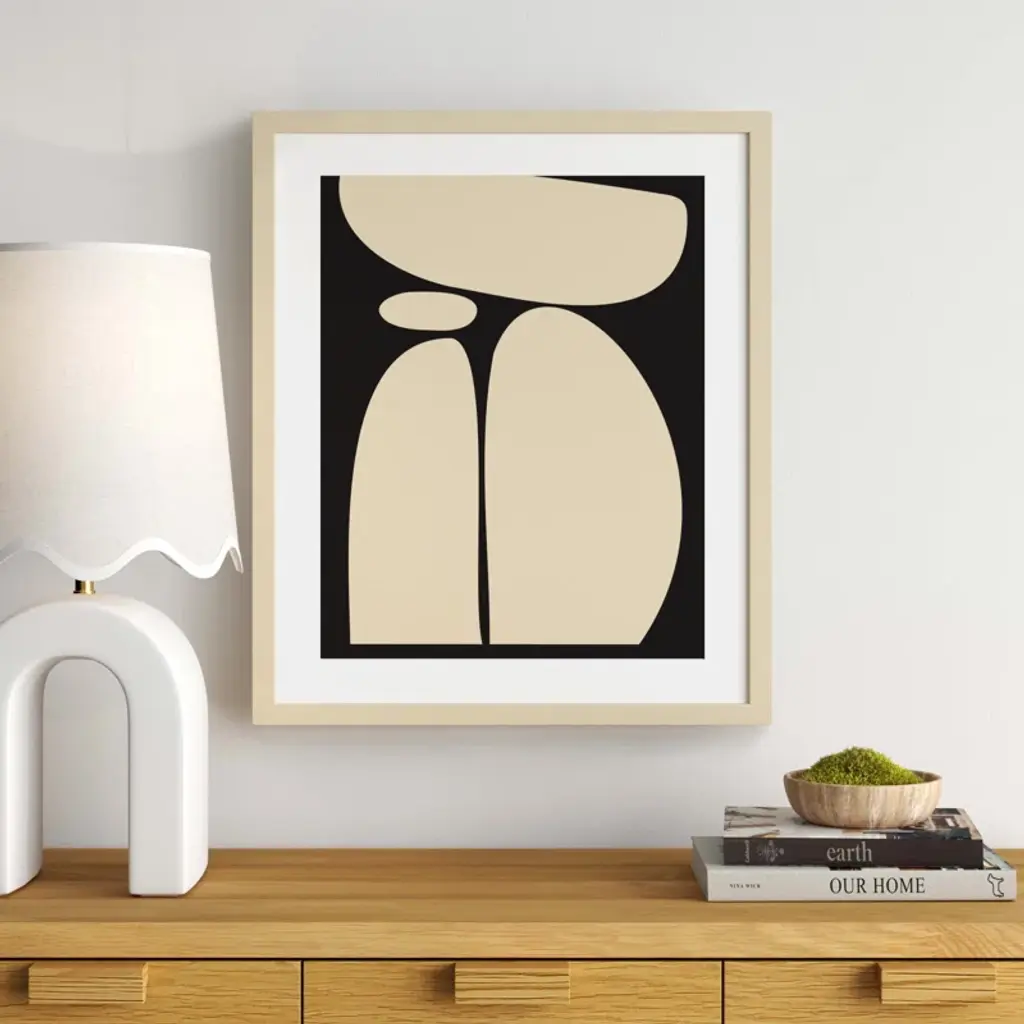 Meet your wall's new best friend! This abstract, rectangle, framed art piece is handcrafted with engineered wood and graced with an acrylic glazing. The Creative Bunch Studio brings to you an intriguing depiction of oblong shapes, like a teetering tower of rocks, against a striking black backdrop. This singular work of art can become the focal point of any room, bringing an element of balance and calm. Plus, it's a breeze to hang in portrait orientation, making it perfect for that empty wall space you've been eyeing.
