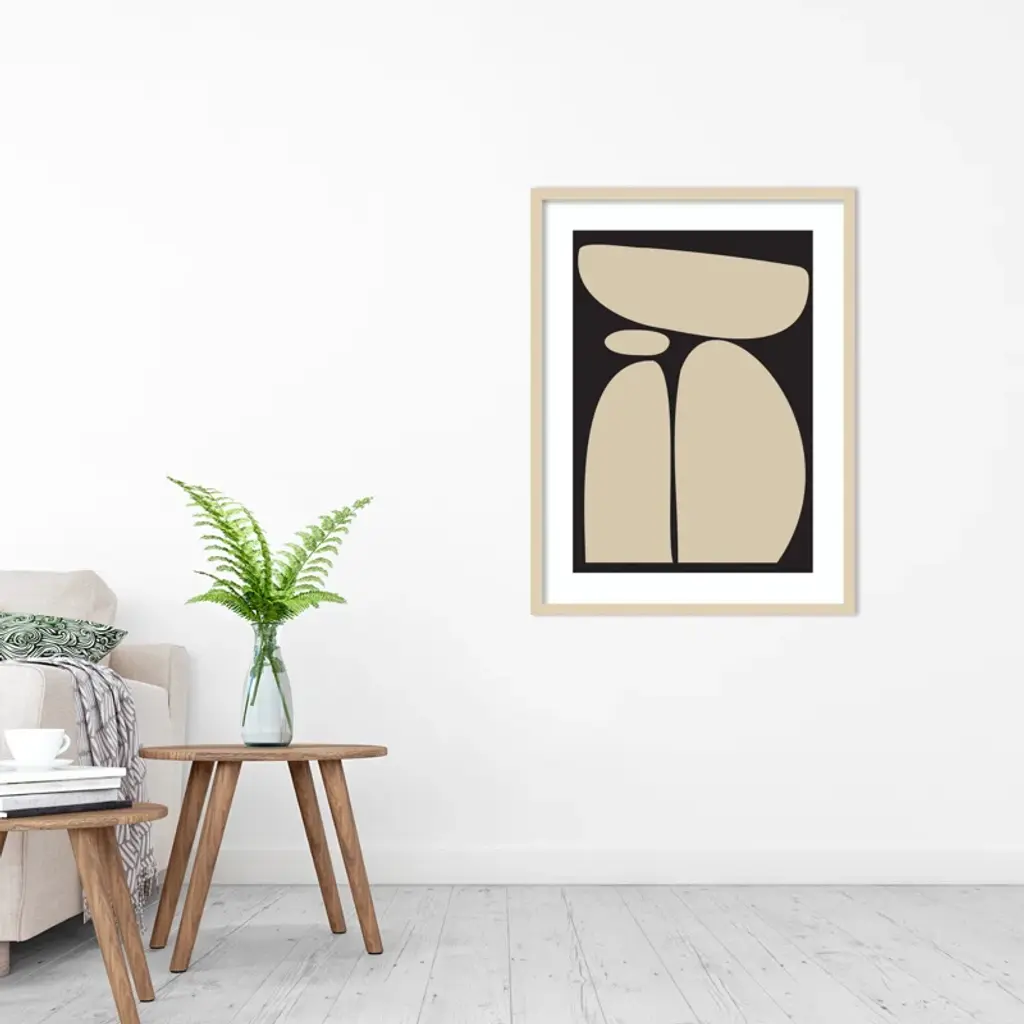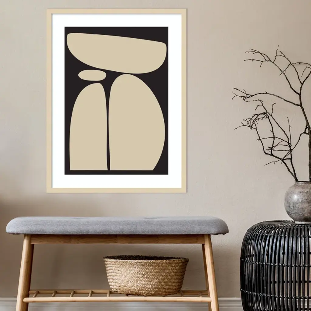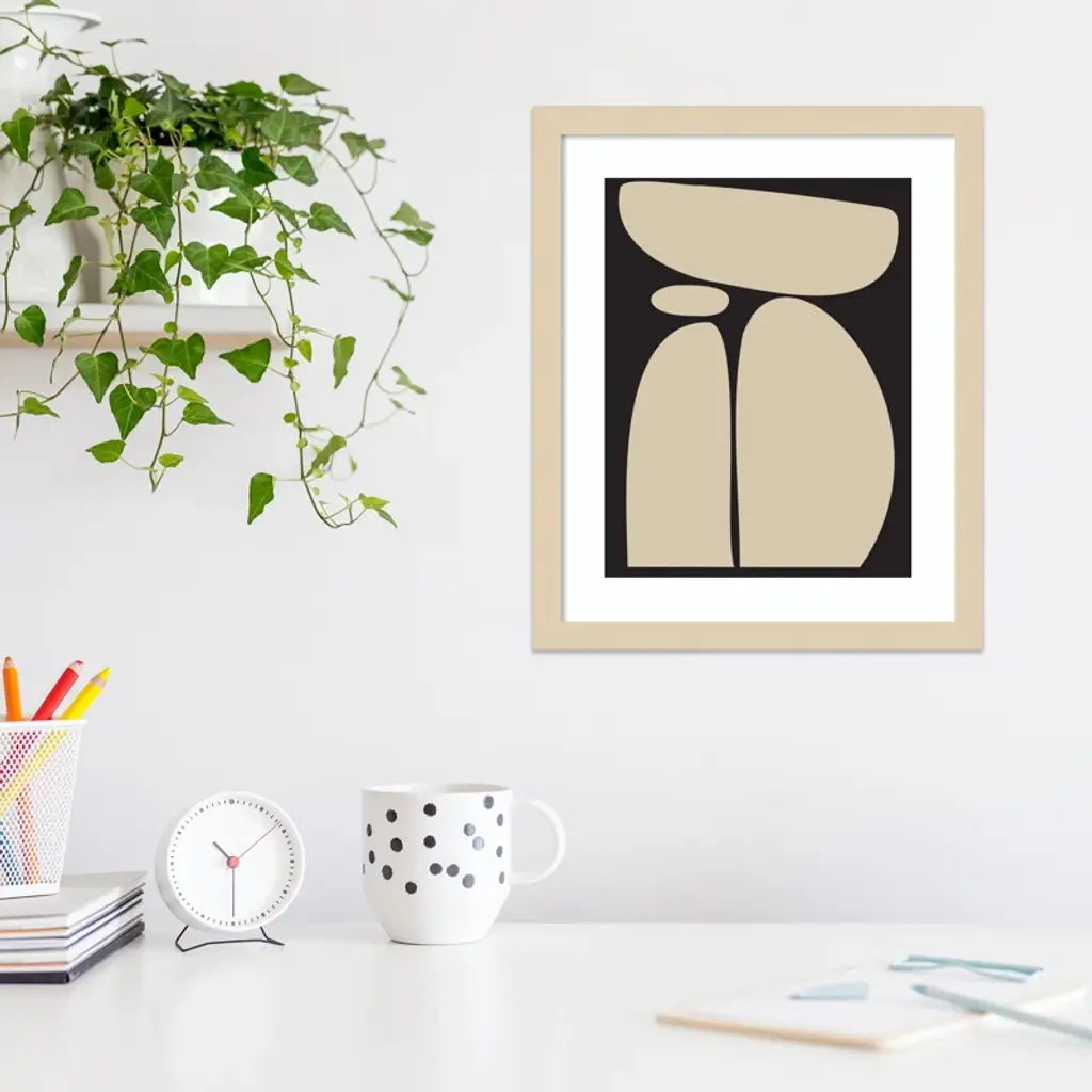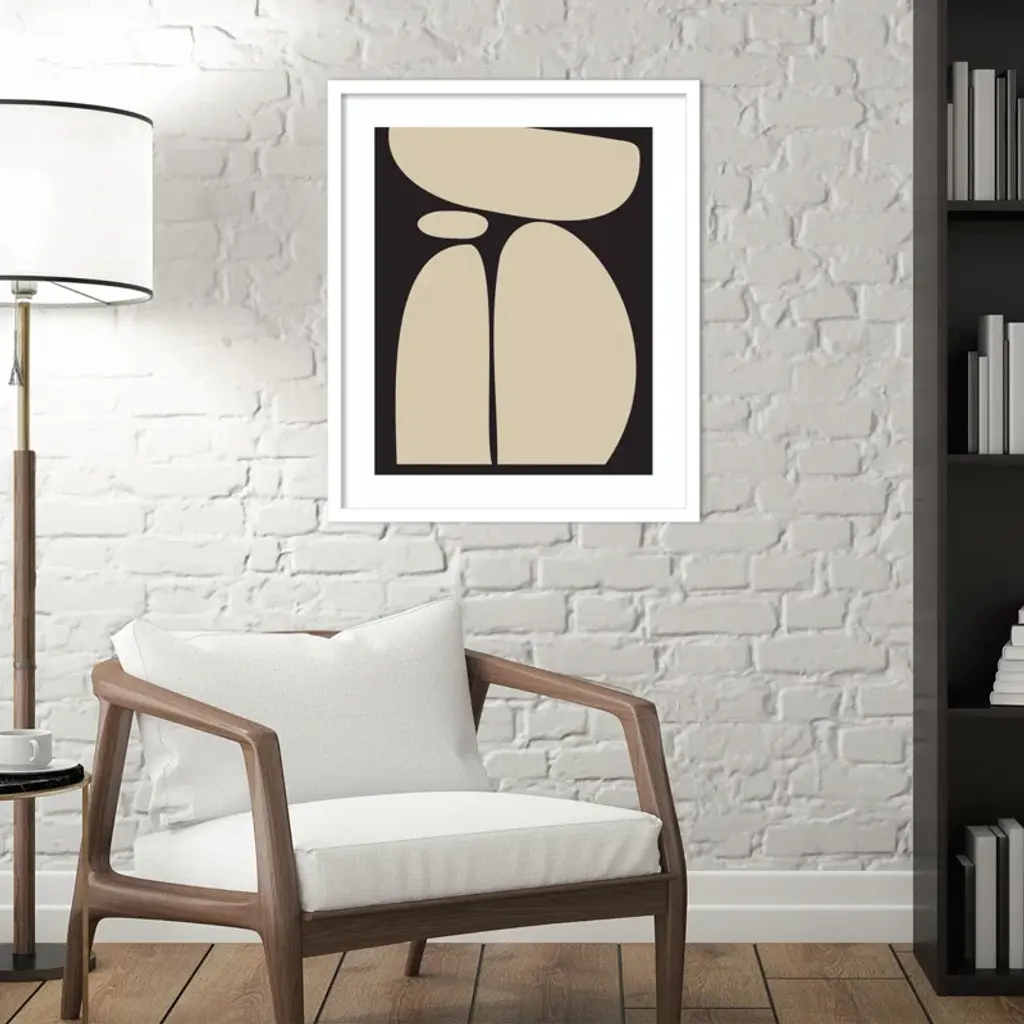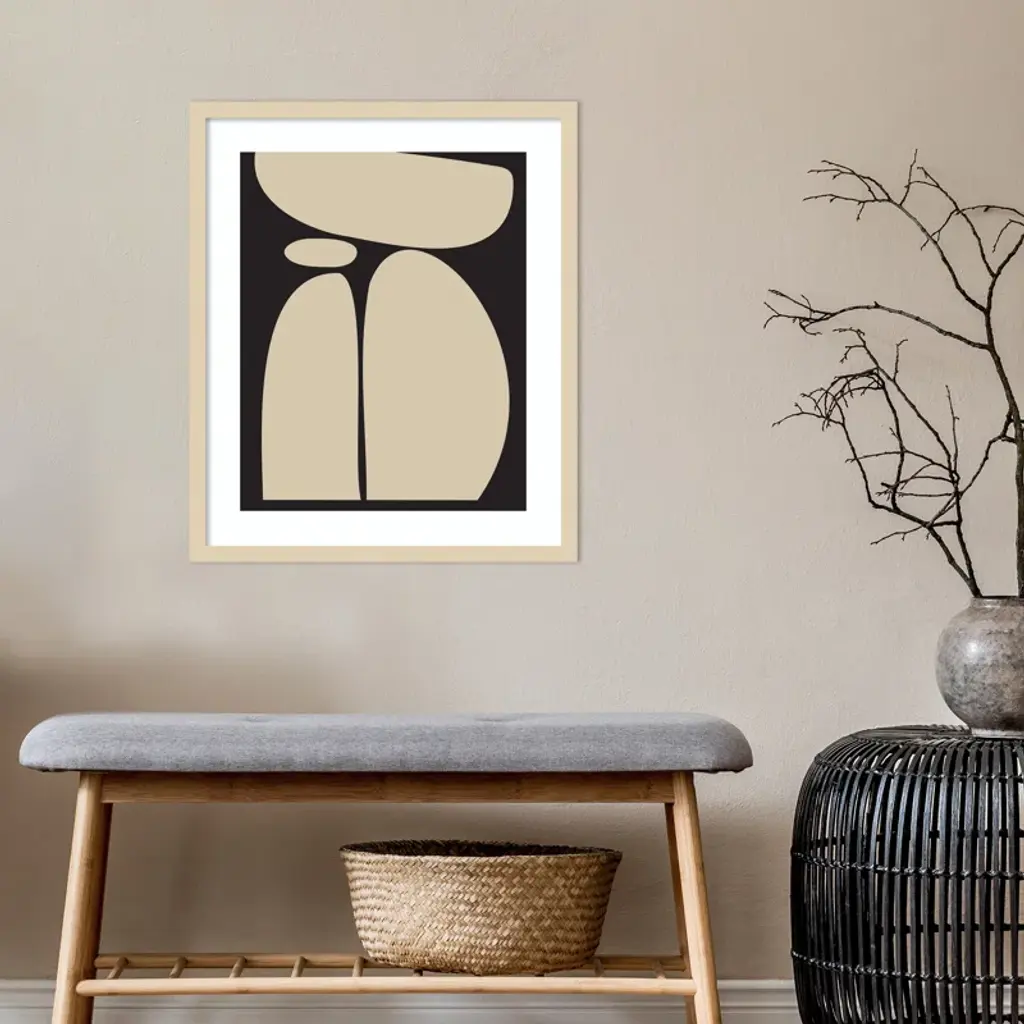 Meet your wall's new best friend! This abstract, rectangle, framed art piece is handcrafted with engineered wood and graced with an acrylic glazing. The Creative Bunch Studio brings to you an intriguing depiction of oblong shapes, like a teetering tower of rocks, against a striking black backdrop. This singular work of art can become the focal point of any room, bringing an element of balance and calm. Plus, it's a breeze to hang in portrait orientation, making it perfect for that empty wall space you've been eyeing.