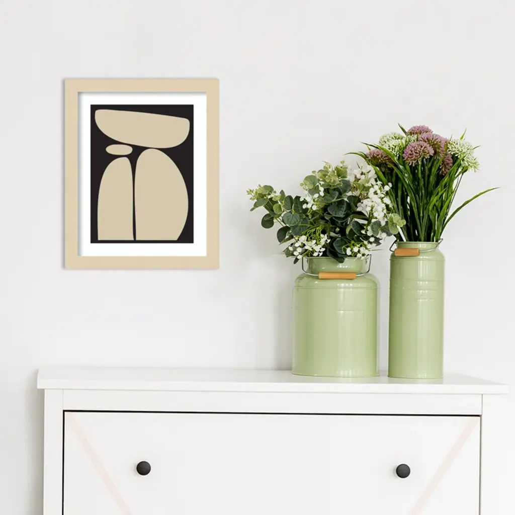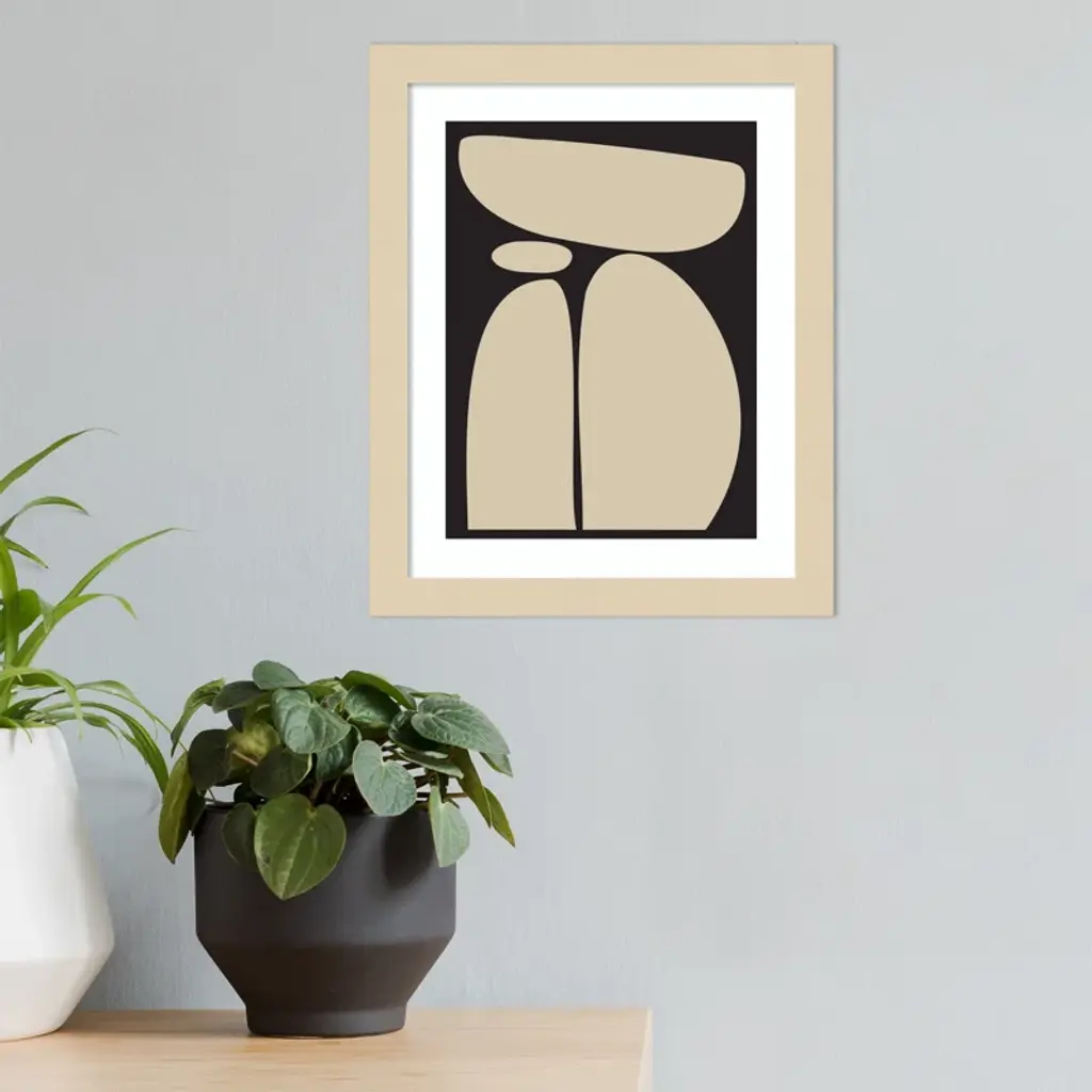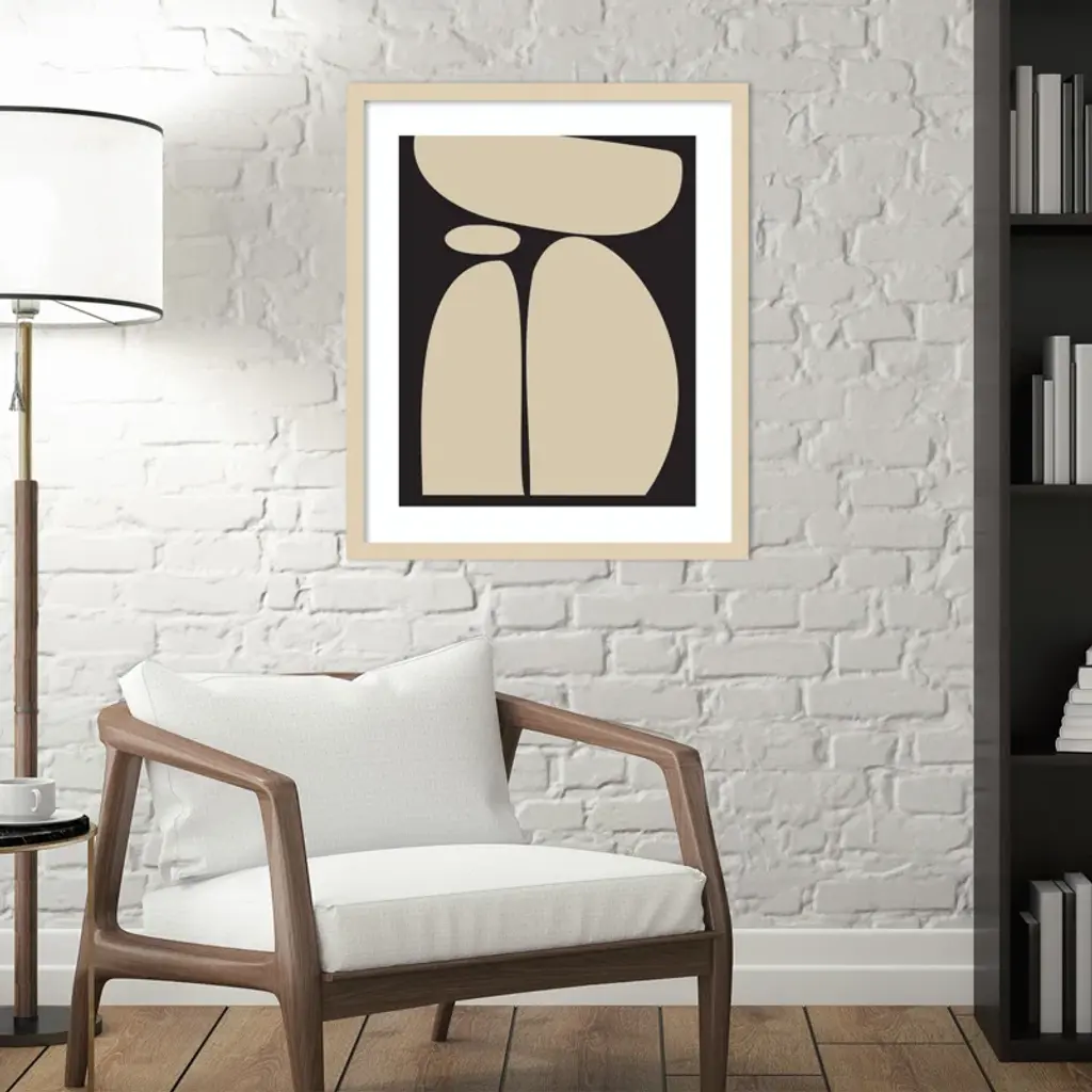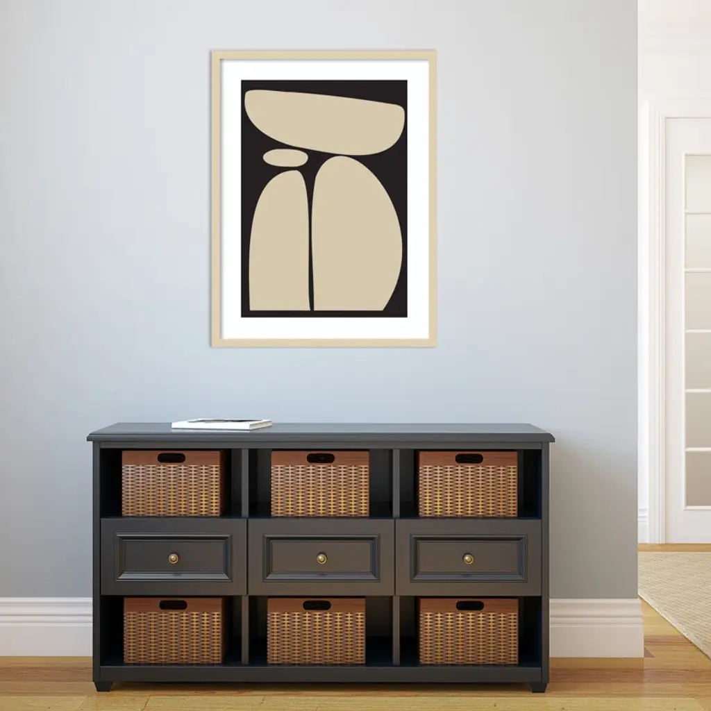 Meet your wall's new best friend! This abstract, rectangle, framed art piece is handcrafted with engineered wood and graced with an acrylic glazing. The Creative Bunch Studio brings to you an intriguing depiction of oblong shapes, like a teetering tower of rocks, against a striking black backdrop. This singular work of art can become the focal point of any room, bringing an element of balance and calm. Plus, it's a breeze to hang in portrait orientation, making it perfect for that empty wall space you've been eyeing.