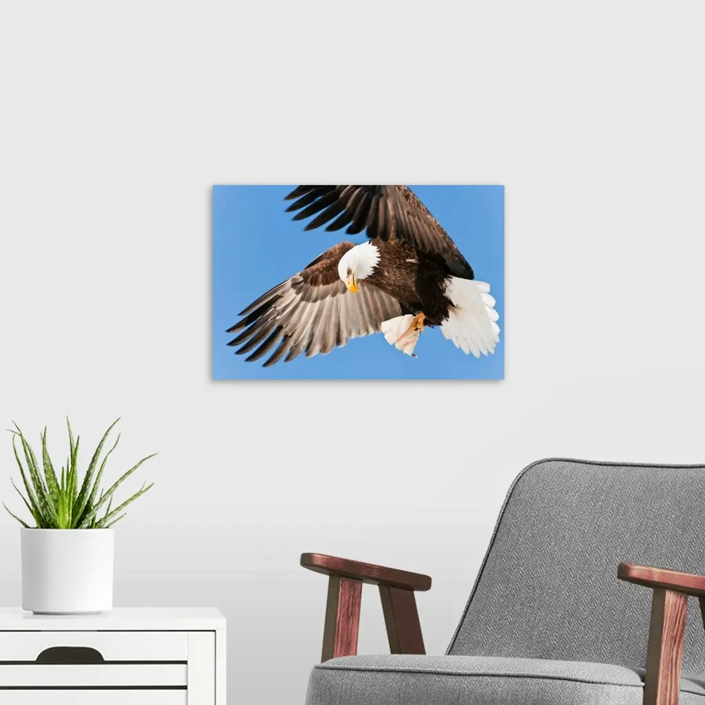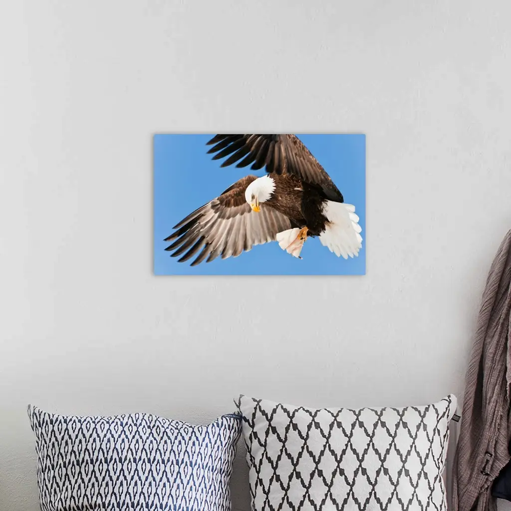 Bald Eagle (Haliaeetus Leucocephalus) In Flight With Talons Holding Fish Bait