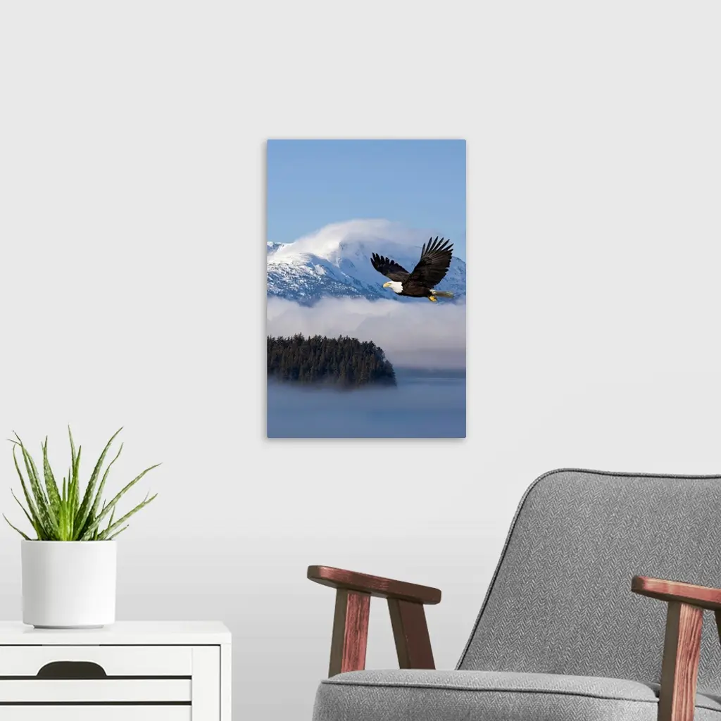 Bald Eagle In Flight Over The Inside Passage Near Tongass National Forest