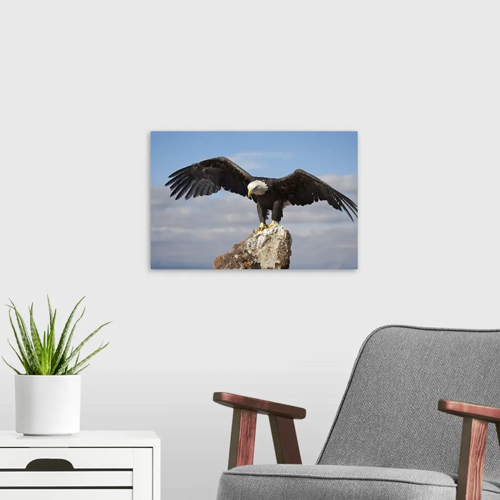 Bald eagle perched with spread wings, Boulder County, Colorado wall art for home and office decor. Discover canvas art prints, photos, mural, big canvas art and framed wall art in GreatBigCanvas.com's varied collections.