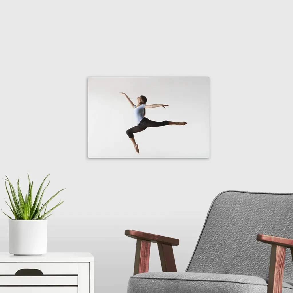 Ballerina Leaping In Mid-Air wall art for home and office decor. Discover canvas art prints, photos, mural, big canvas art and framed wall art in GreatBigCanvas.com's varied collections.