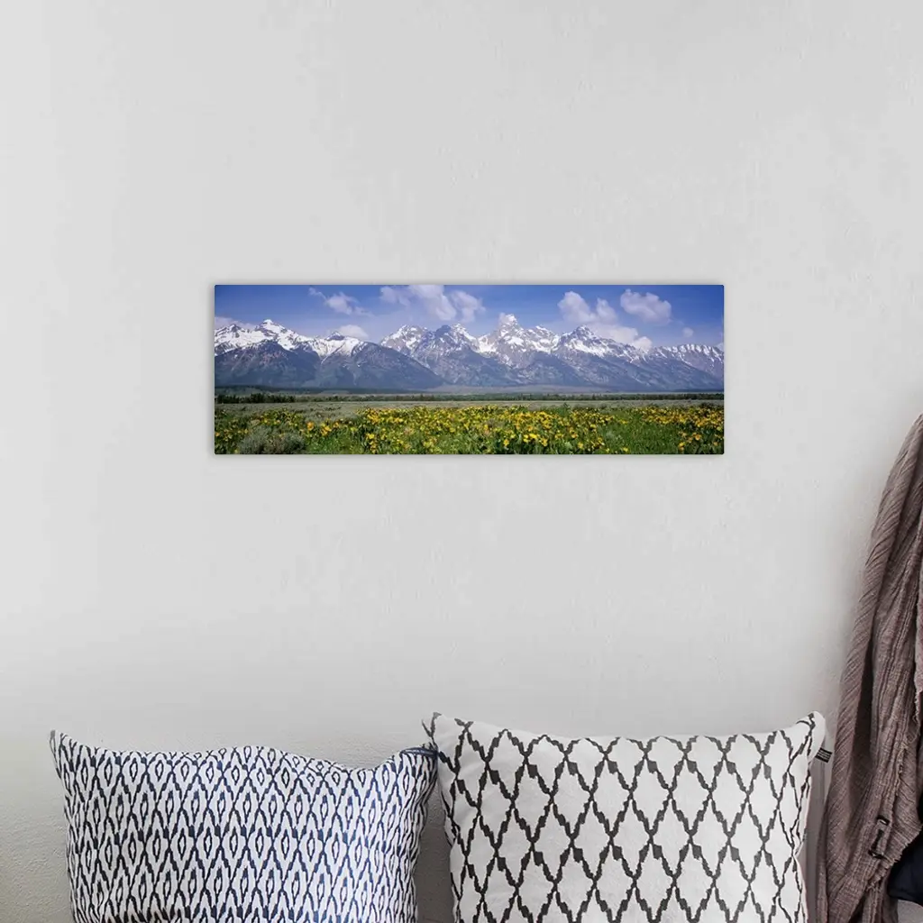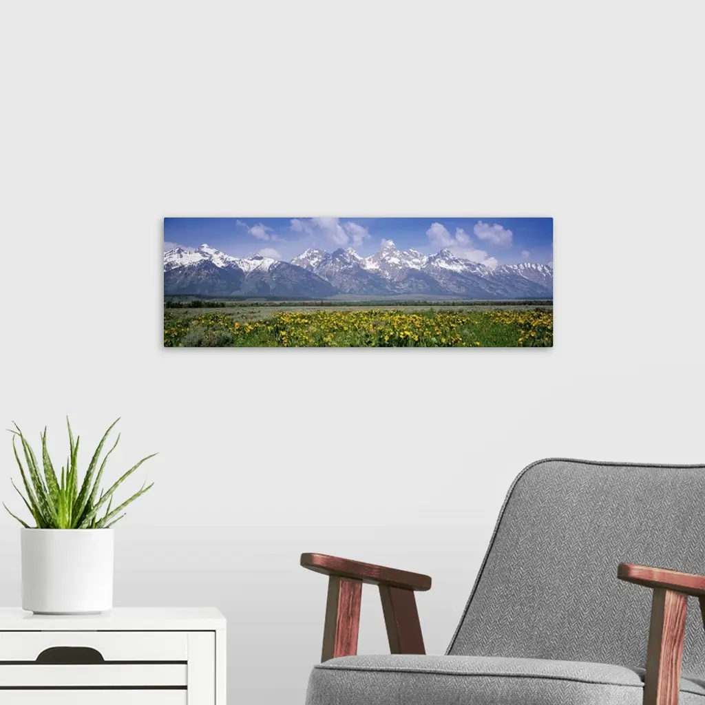Balsamroots In Front Of A Mountain Range, Grand Teton National Park, Wyoming