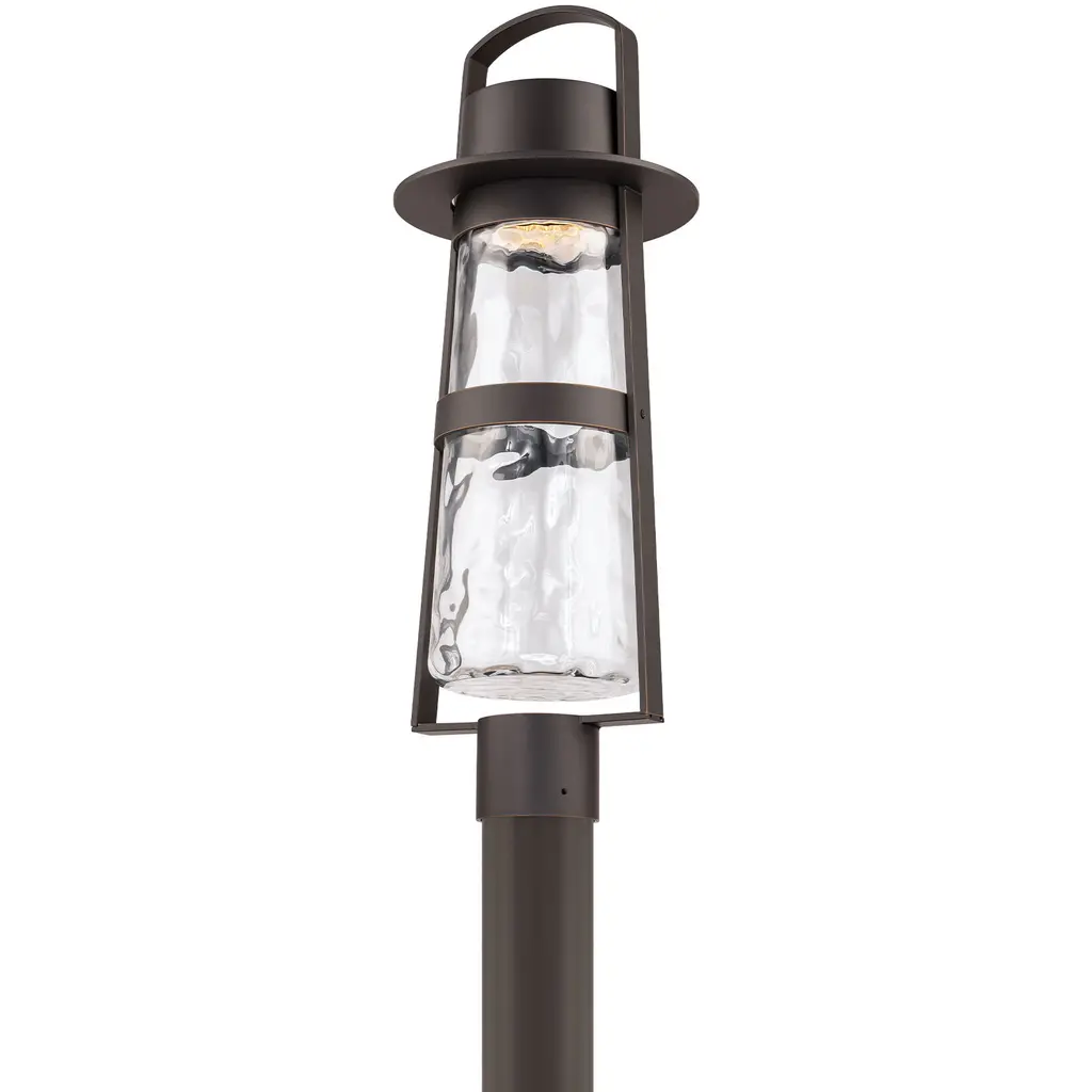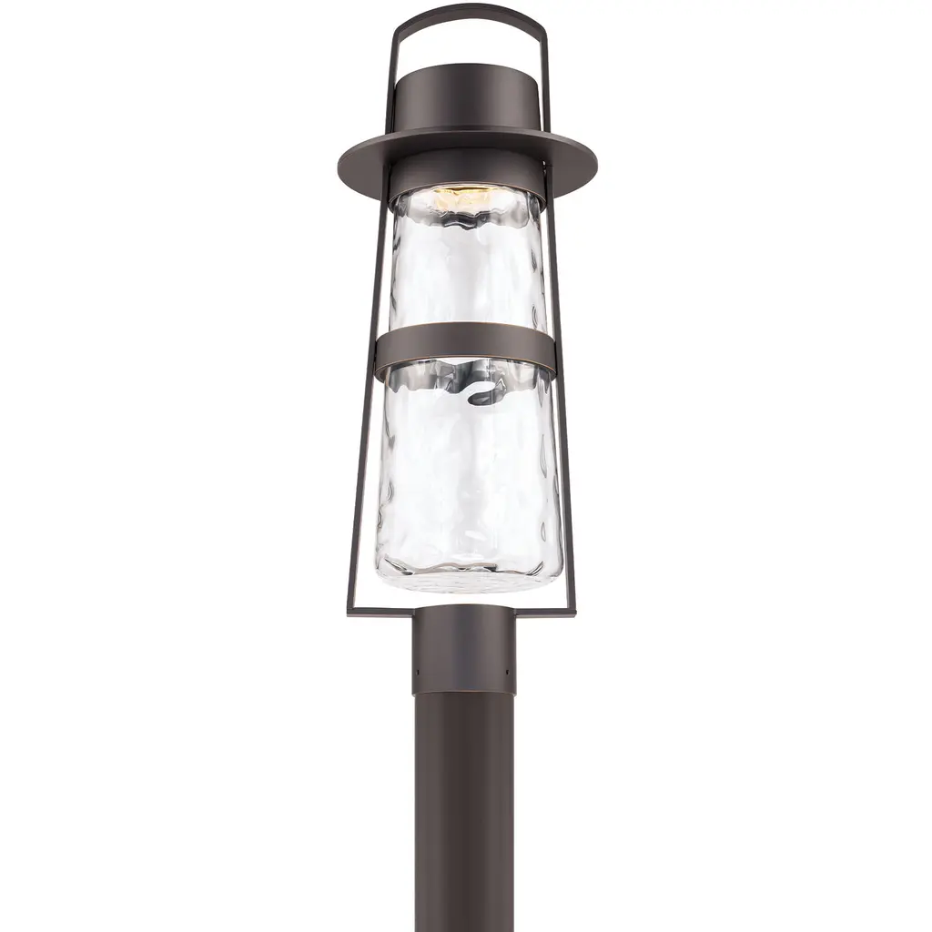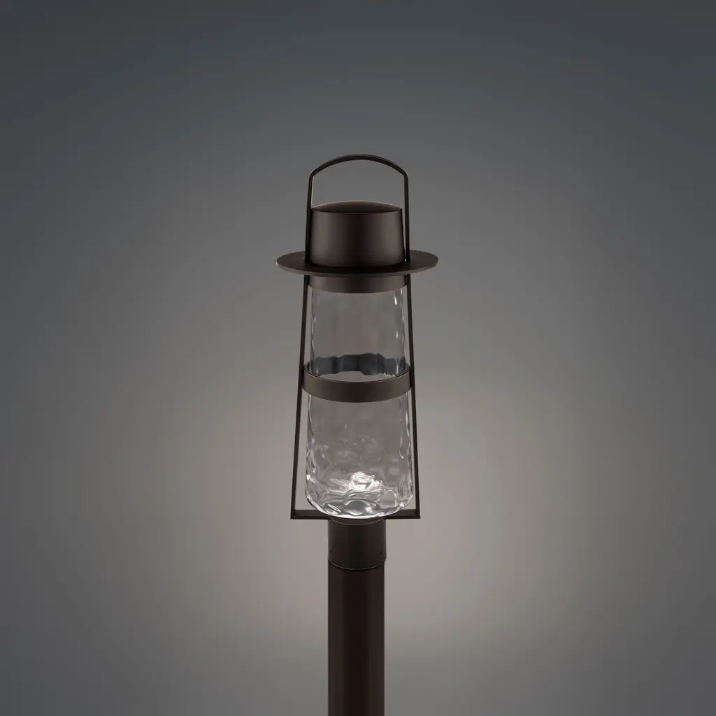 Vintage inspiration meets modern technology on the refined Balthus transitional post mount light. Integrated LEDs inside emit 3000K, energy-efficient light through clear, hammered glass for a shimmering visual effect the eponymous painter would be proud of. The 23-inch Balthus luminaire is available in a choice of black or oil-rubbed bronze finishes.